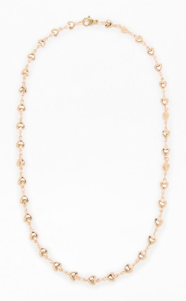 The Heart Chain Necklace from John Galt is a sweet statement piece with a playful twist. It features a beaded heart chain in a shiny gold finish with a lobster clasp closure—perfect for adding charm to any look.Beaded heart chainGold finishLobster clasp closure • Color: Gold • Size: One Size