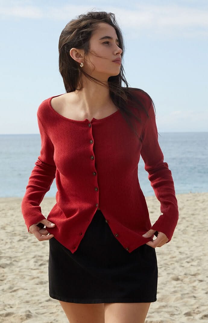 John Galt Women's Athelia Pointelle Cardigan Red One Size