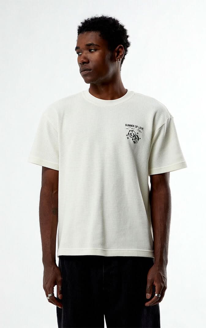 The Roll Waffle Knit T-Shirt from PacSun brings texture and style to your everyday look. Made with soft waffle knit fabric, this tee features a crew neckline, short sleeves, and standout graphics at the left chest and back for a unique, casual vibe.Solid color teeWaffle knit fabricCrew necklineShort sleevesLeft chest and back graphicsStandard fitMachine washableModel is wearing a size mediumModel Measurements: 6’3” Height, 28” Waist, 30.5” Hips, 37.5” Chest • Color: Cream • Size: XL
