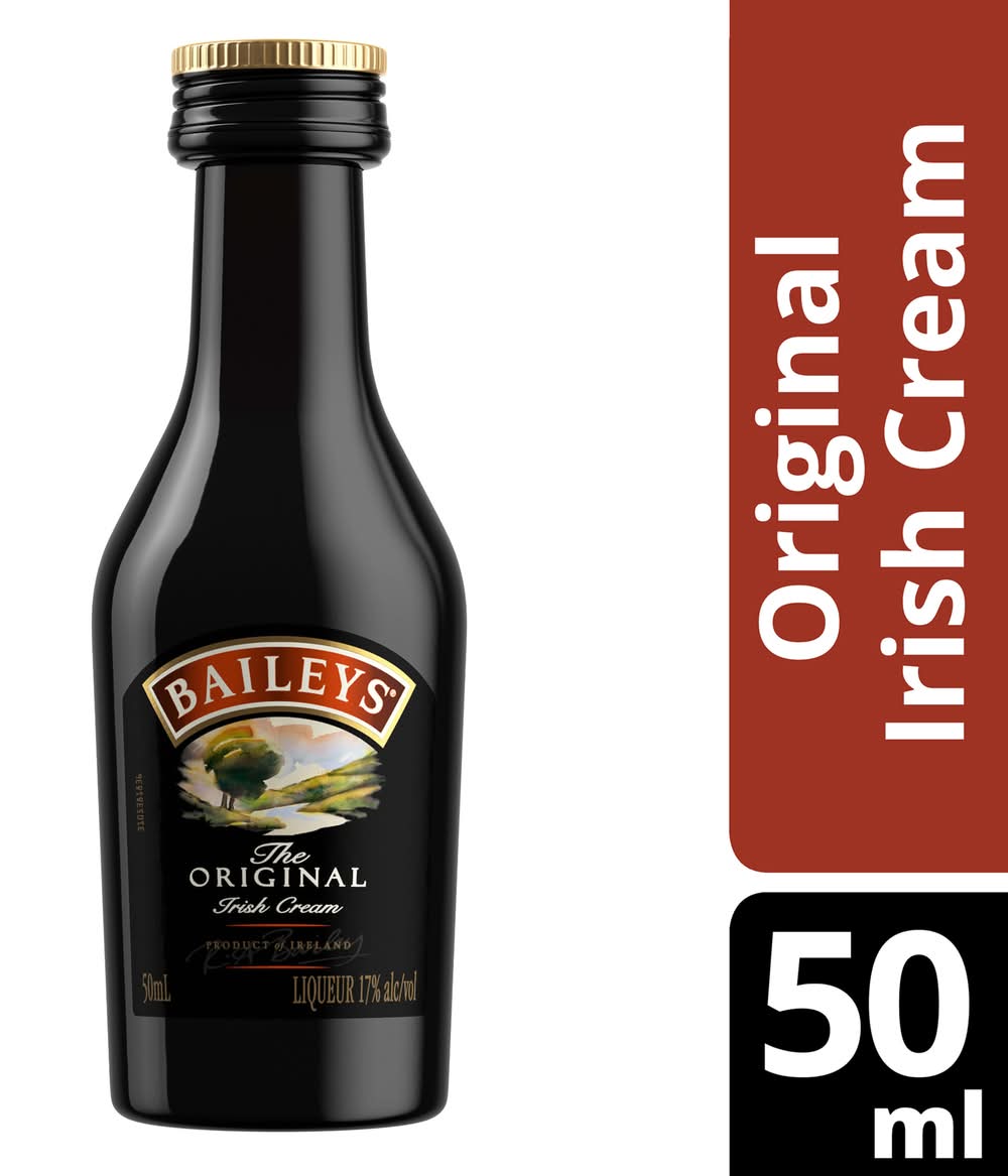 Baileys Original Irish Cream Liqueur is the world's number one Irish cream liqueur, a perfect blend of fine Irish whiskey, spirits, Irish dairy cream, and sumptuous chocolate and vanilla flavors. With its distinct velvety texture and perfect combination of smooth cream and Irish whiskey, it invites you to enjoy it neat, over ice, or as a delicious addition to your favorite coffee. And if you're looking for more ways to indulge, from gooey Baileys Irish Cream Cheesecake to classy Baileys Espresso Martini, Baileys recipes hit the sweet spot every time. Drawing on traditional Irish dairy and distillation practices, this distinctive blend required four years to achieve perfection, culminating in the ultimate liquid treat. Includes one 34 proof 50 mL bottle of Original Irish Cream Liqueur. Please drink responsibly. Alcohol by volume: 17%