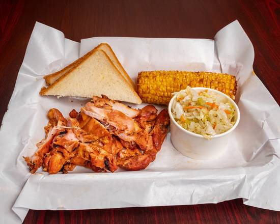 Juicy pulled chicken served with thick bread and two sides of your choice.