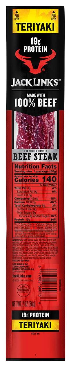 A little sweet. A little savory. Our teriyaki meat sticks deliver a delicious balance of soy, garlic, sweet brown sugar and a hint of garlic. Our protein snacks are the fuel to help you Feed Your Wild Side®. Brand: Jack link's