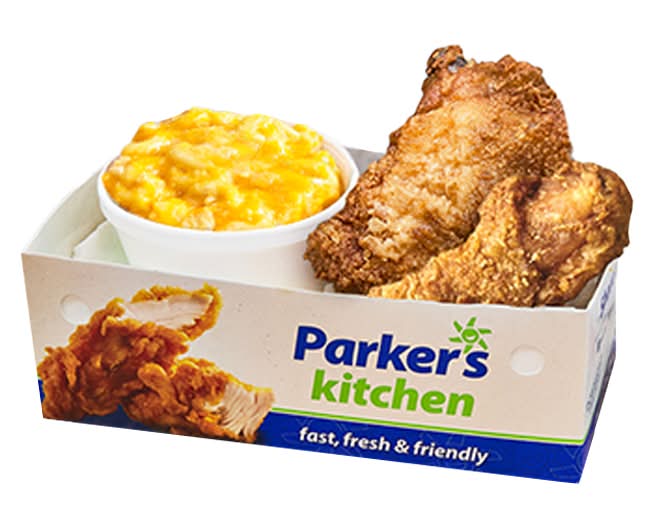 Your choice of two legs, two thighs, or one of each, with a small side and large drink to go with it.