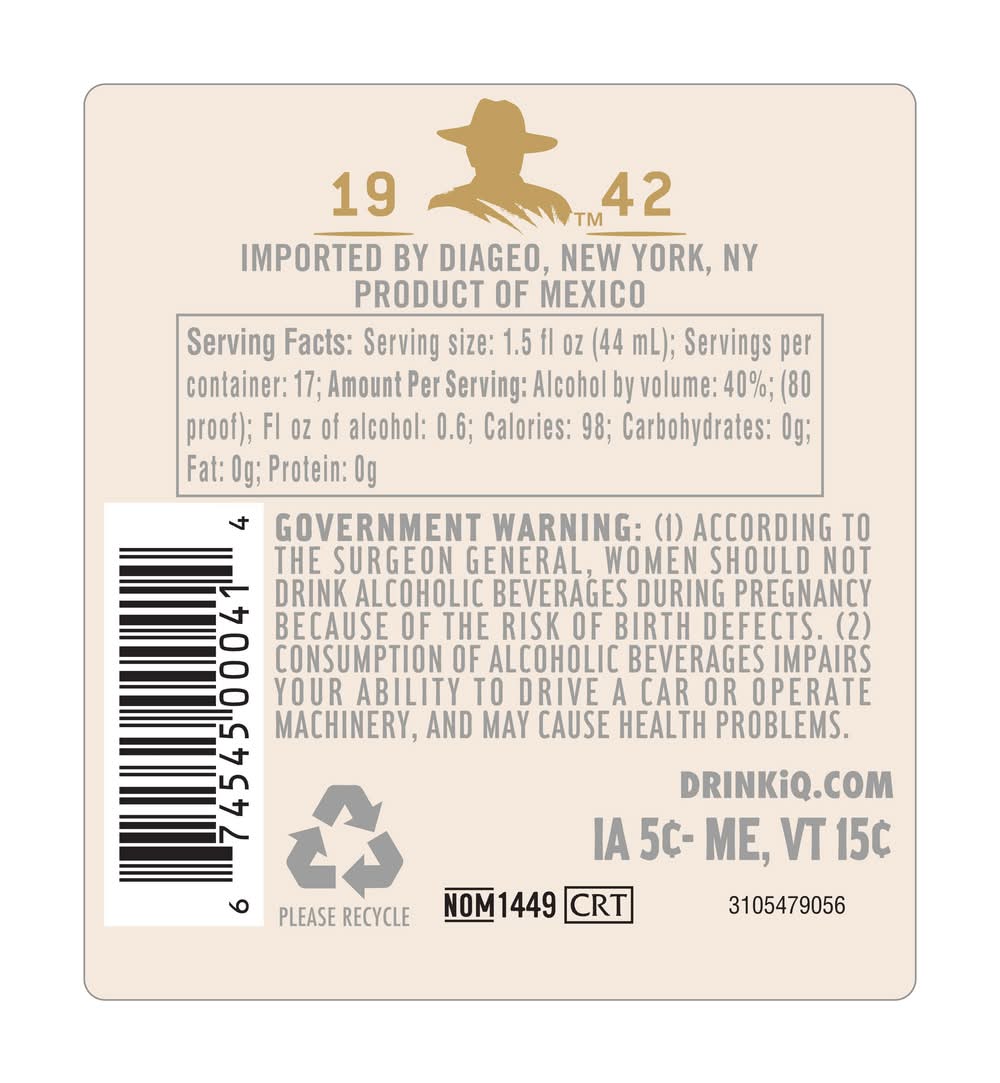 • Alcohol by volume: 40% • Diageo, 1350 Ave of the Americas, New York.