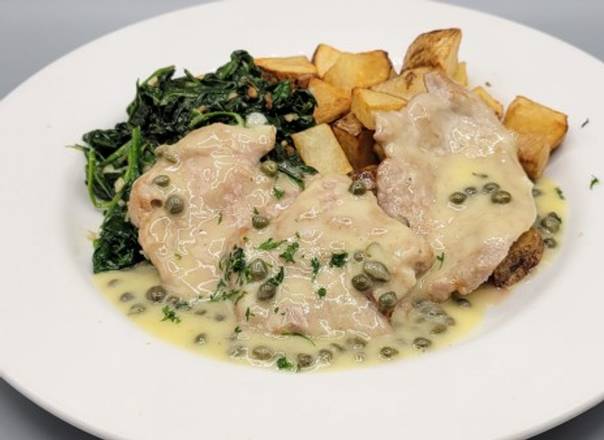 Lemon Caper Sauce, Spinach, Roasted Potato