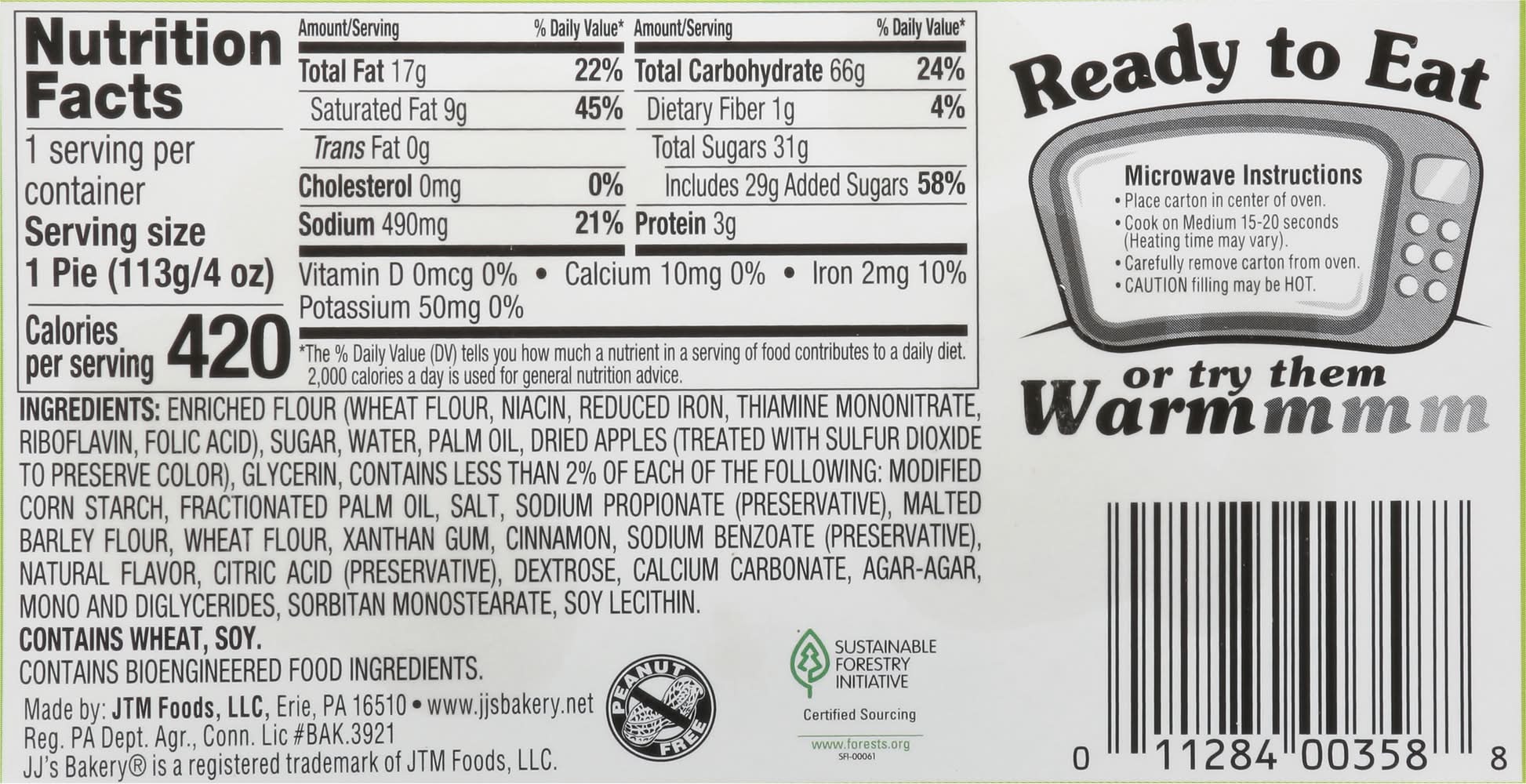 JJ's Bakery Lightly Glazed Apple Pie (4 oz)