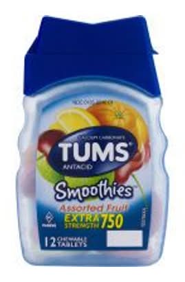 TUMS Smoothies Extra Strength Antacid Chewable Tablets Assorted Fruit 12 ct 750 mg Bottle