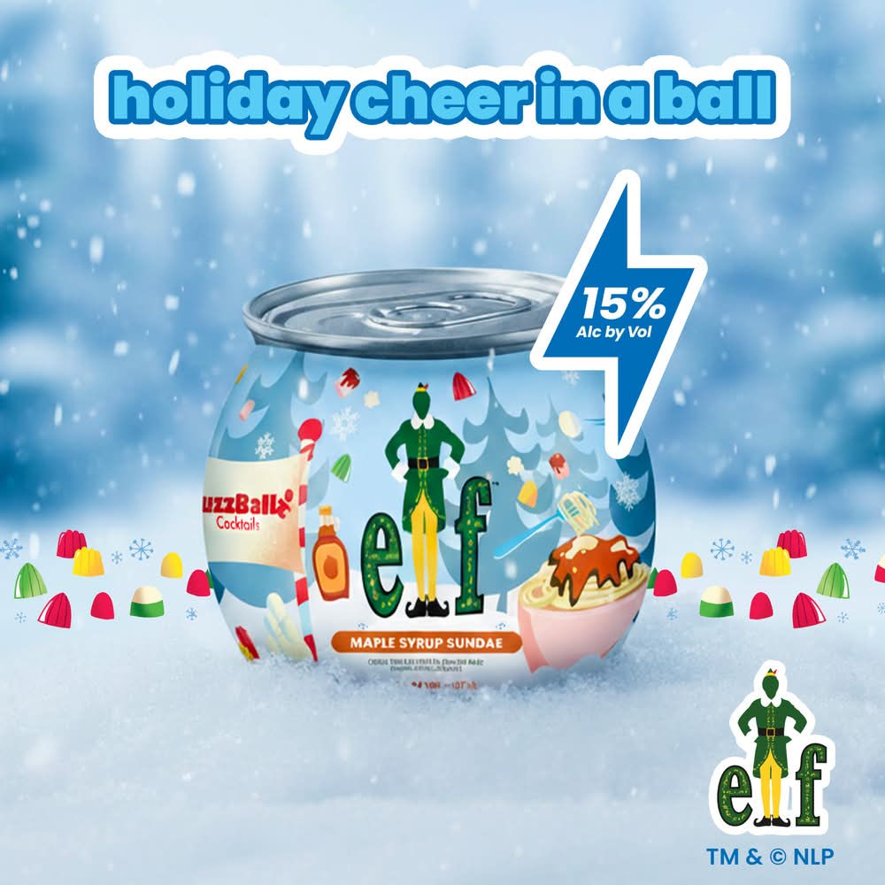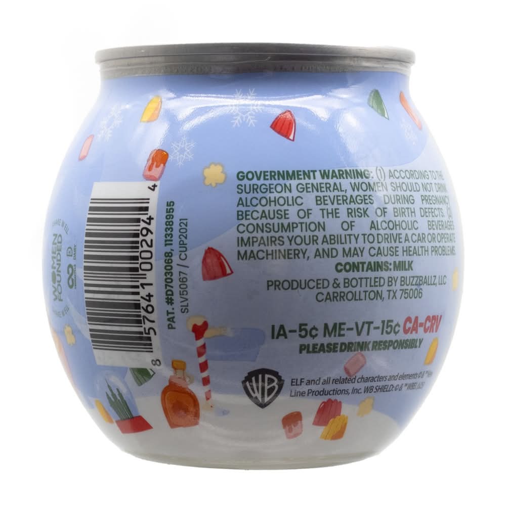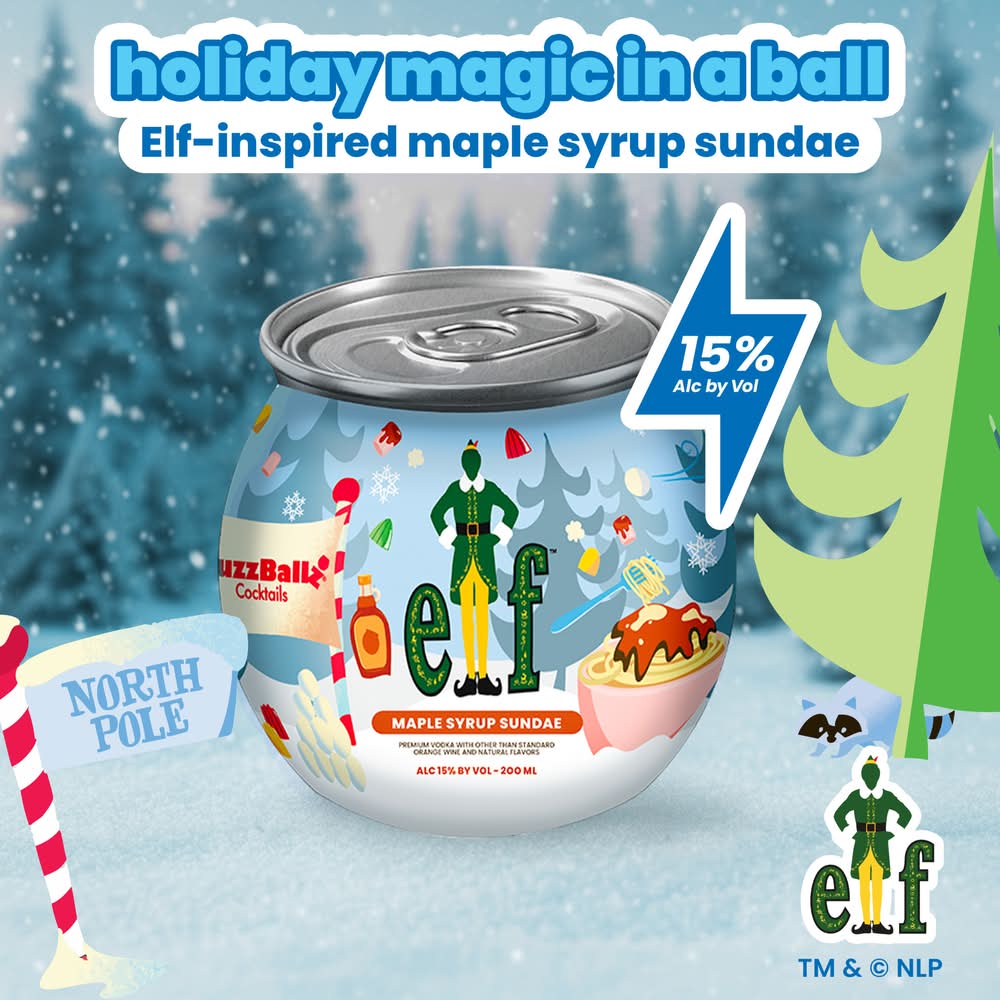 BuzzBallz Elf Cocktails 200ml – 15% ABV (30 Proof) – Ready-to-Drink Holiday Cocktail with Maple Syrup Sundae Flavor • Brand: Buzzballz • Flavor: Maple syrup sundae • Alcohol by volume: 15% • Number of servings: 4