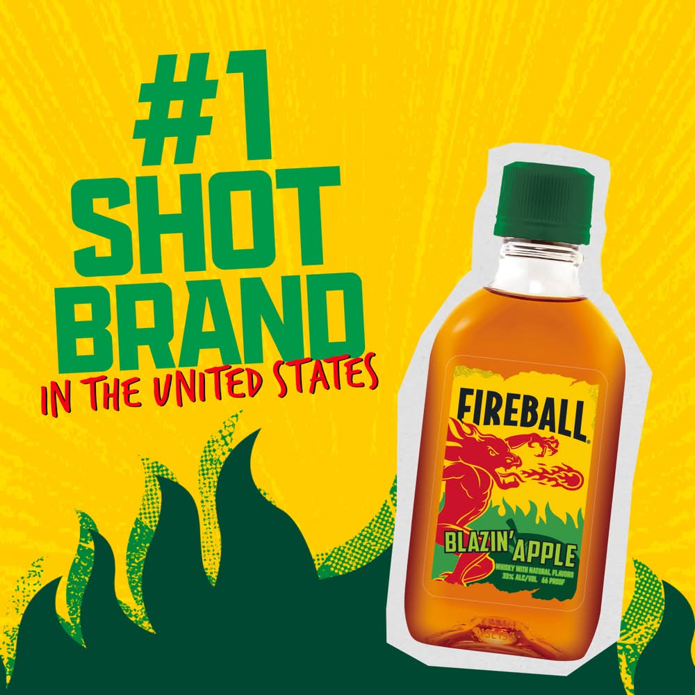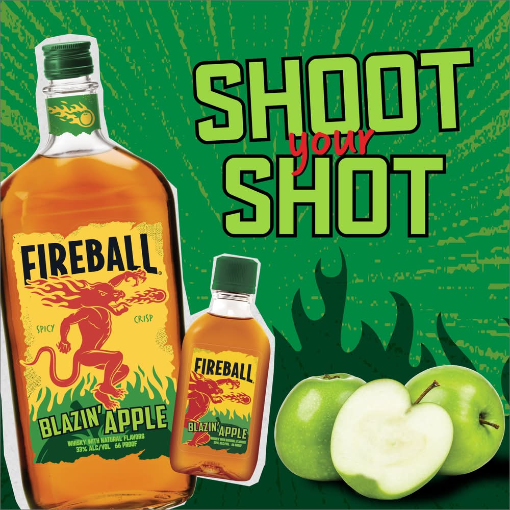 Free Your Fire with the heavenly taste and ferocious burn of Fireball Blazin' Apple Whisky. Fireball Blazin' Apple is the perfect choice for celebrating with friends at home or your favorite bar. At 33% ABV, a Fireball shot is the perfect whiskey shot for pregaming before a chill night out. Fireball Canadian Whisky also tastes great when enjoyed straight or added to your favorite mixed drinks or a classic cocktail. The Blazin Apple flare of Fireball hard liquor also enhances your favorite hard seltzer, hard cider and other alcoholic drinks. With countless ways to enjoy Fireball Whisky, bending the rules is easy - and delicious. Store Fireball at room temperature or store and pour straight from your freezer to enjoy an icy, spicy shot. Fireball tastes like heaven and burns like hell. • Brand: Fireball • Alcohol by volume: 33%
