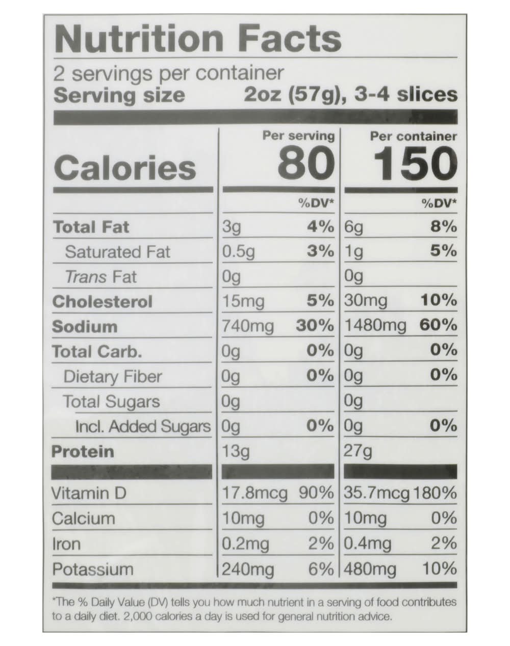 Ingredients: Smoked Sockeye Salmon, Salt Contains: Fish, Salmon
