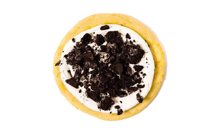 A delicious, buttery-soft sugar cookie with creamy vanilla buttercream icing, topped with crushed Oreos.