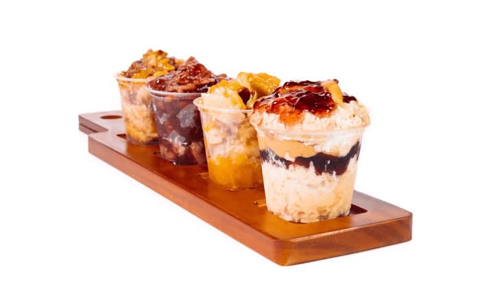 - Dessert FlightChoose 4Requiredw/ Peach Cobblerw/ Honey Apple Cobblerw/ Cherry Cobblerw/ Blackberry Cobblerw/ Strawberry Cobblerw/ Mango Peach Cobblerw/ Strawberry Peach Cobblerw/ Sweet Potato Pecan Cobblerw/ Caramel Apple Cobblerw/ Cinnamon Peach Pralinew/ Blackberry Peach Cobblerw/ Apple Walnut Raisinw/ Original(OG) Puddingw/ Red Velvet Puddingw/ Oreo Puddingw/ Strawberry Puddingw/ Nutella Puddingw/ NY Cheesecake Puddingw/ Cherry Swirl Puddingw/ Butterfinger Puddingw/ PB&J Puddingw/ Coconut Creme Puddingw/ Bourbon Pecan Puddingw/ Chocolate Chip Pudding