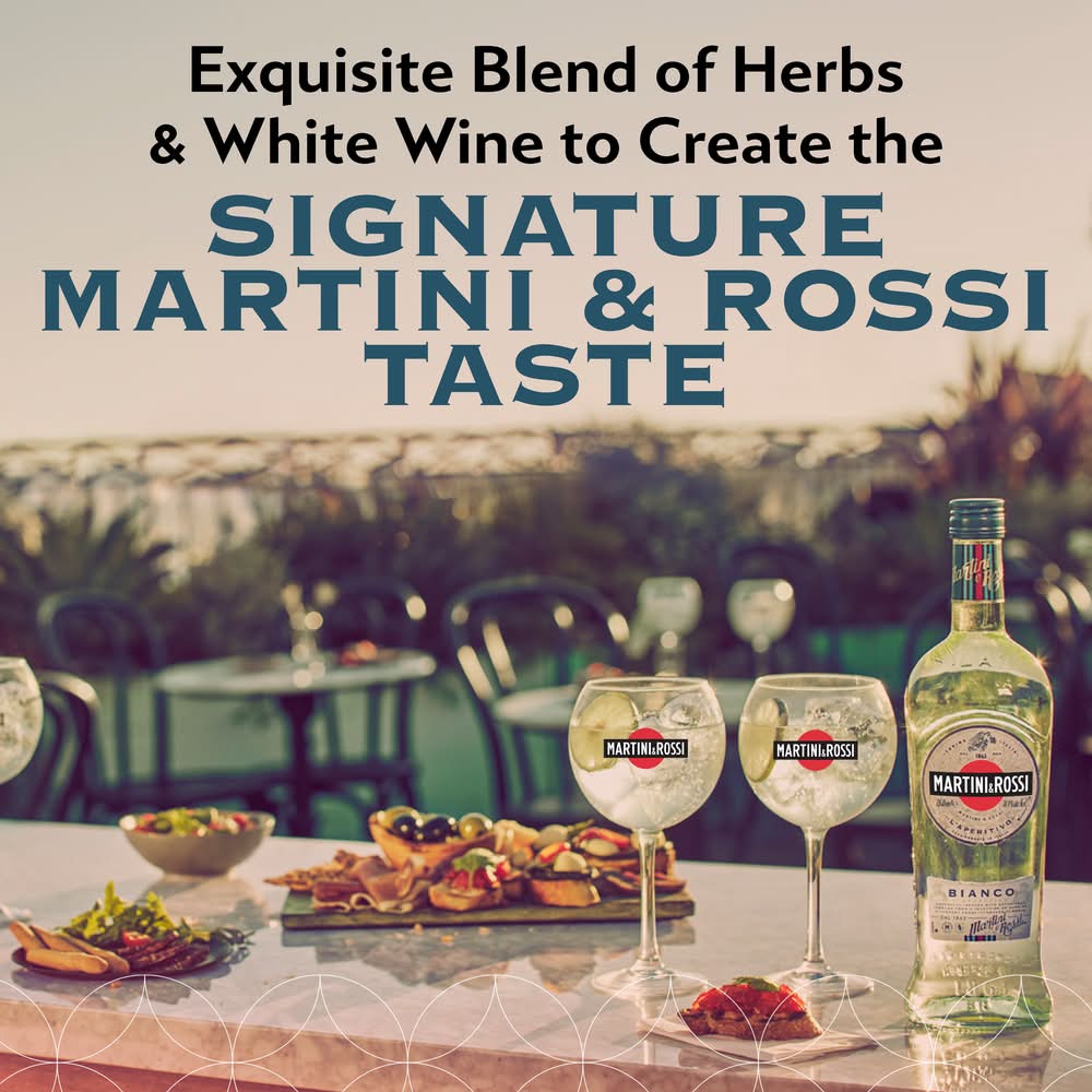 Martini & Rossi Bianco Vermouth - the Queen of Vermouth - is a light and crisp vermouth and the most cosmopolitan of all Italian drinks. Once known as Bianchissimo, meaning 'whitest,' it has been held in the highest regard since its creation in Pessione in 1910. Enjoy it with friends in the classic serve of Martini & Rossi Bianco Vermouth and Tonic. Alcohol by volume: 15%
