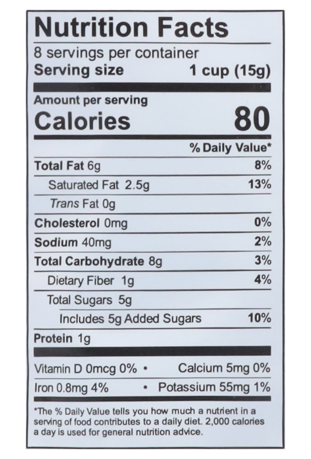 Ingredients: Dark Chocolate [Chocolate Liquor (Fair Trade Certified by Fair Trade USA, 65% Fair Trade Certified Ingredients), Cane Sugar (Fair Trade Certified by Fair Trade USA, 65% Fair Trade Certified Ingredients), Cocoa Butter (Fair Trade Certified by Fair Trade USA, 65% Fair Trade Certified Ingredients), Vanilla], Organic Peanuts, Organic Cane Sugar (Fair Trade Certified by Fair Trade USA, 65% Fair Trade Certified Ingredients), Organic Palm Oil (Sustainably Sourced Palm Oil), Organic Peanut Flour, Organic Blue Agave Inulin, Sea Salt, Sunflower Lecithin Contains: Peanuts, Tree Nuts, Eggs, Soybeans, Wheat, Milk