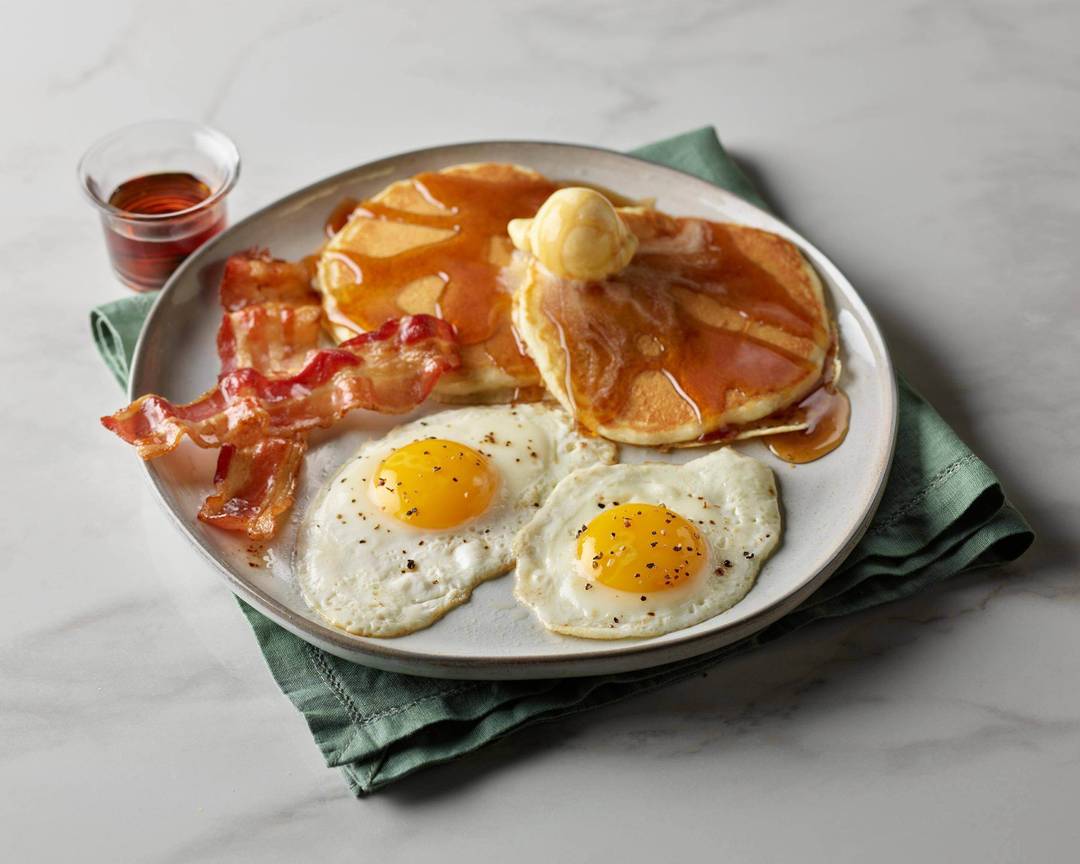 Our three-egg omelets are served with choice of hash browns or breakfast potatoes and choice of three pancakes, buttered toast, or Mammoth Muffin®.Bennys & Toasts