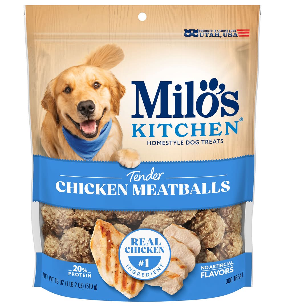 Milo’s Kitchen Chicken Meatballs Dog Treats Milo's Kitchen LLC, Orrville, OH, 44667, Ph: 877-228-6493