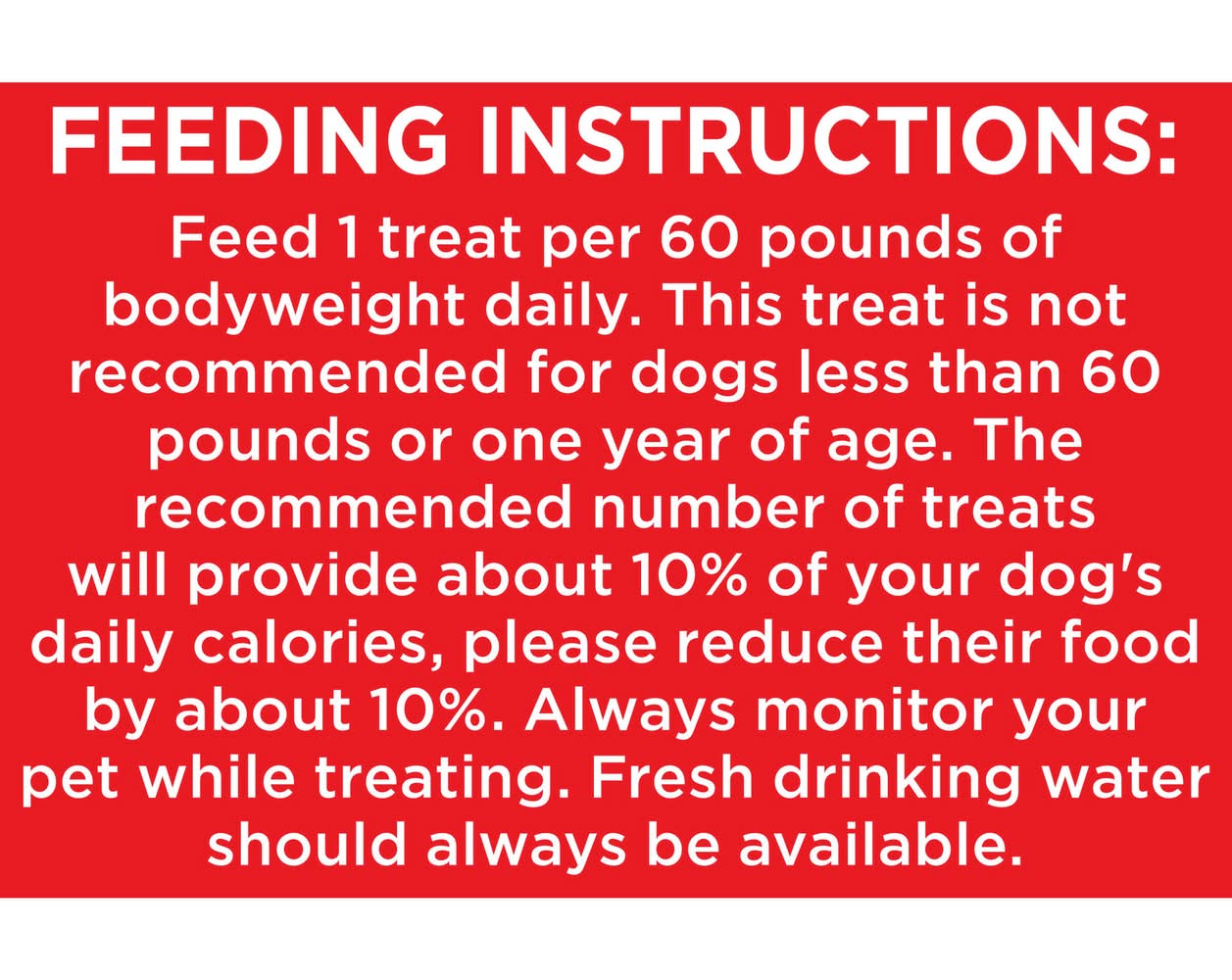 Feeding instructions: feed as a snack or treat, as part of a healthy diet. always monitor your pet while treating. we recommend giving 1-3 biscuits per day as part of your dog's regular diet. as a guide, feed 1 biscuit per 33 pounds of your dog's body weight.