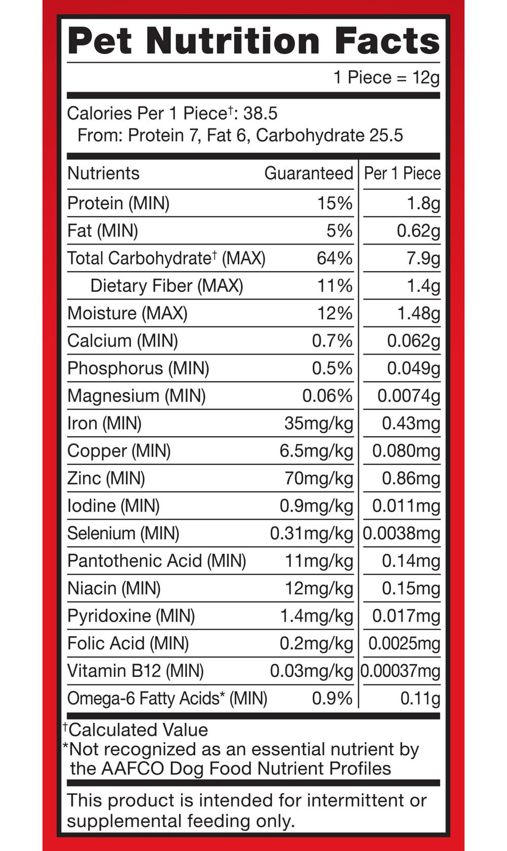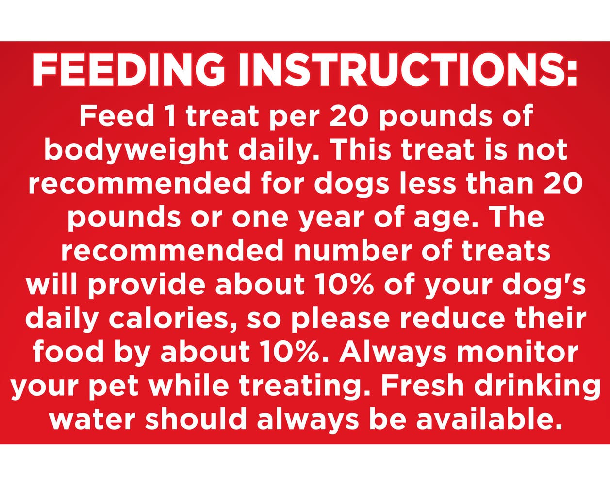 Feeding instructions: feed as a snack or treat, as part of a healthy diet. we recommend giving 3-6 biscuits per day as part of your dog’s regular diet. as a guide, feed 1 biscuit per 10 pounds of your dog’s body weight. always monitor your pet while treating.