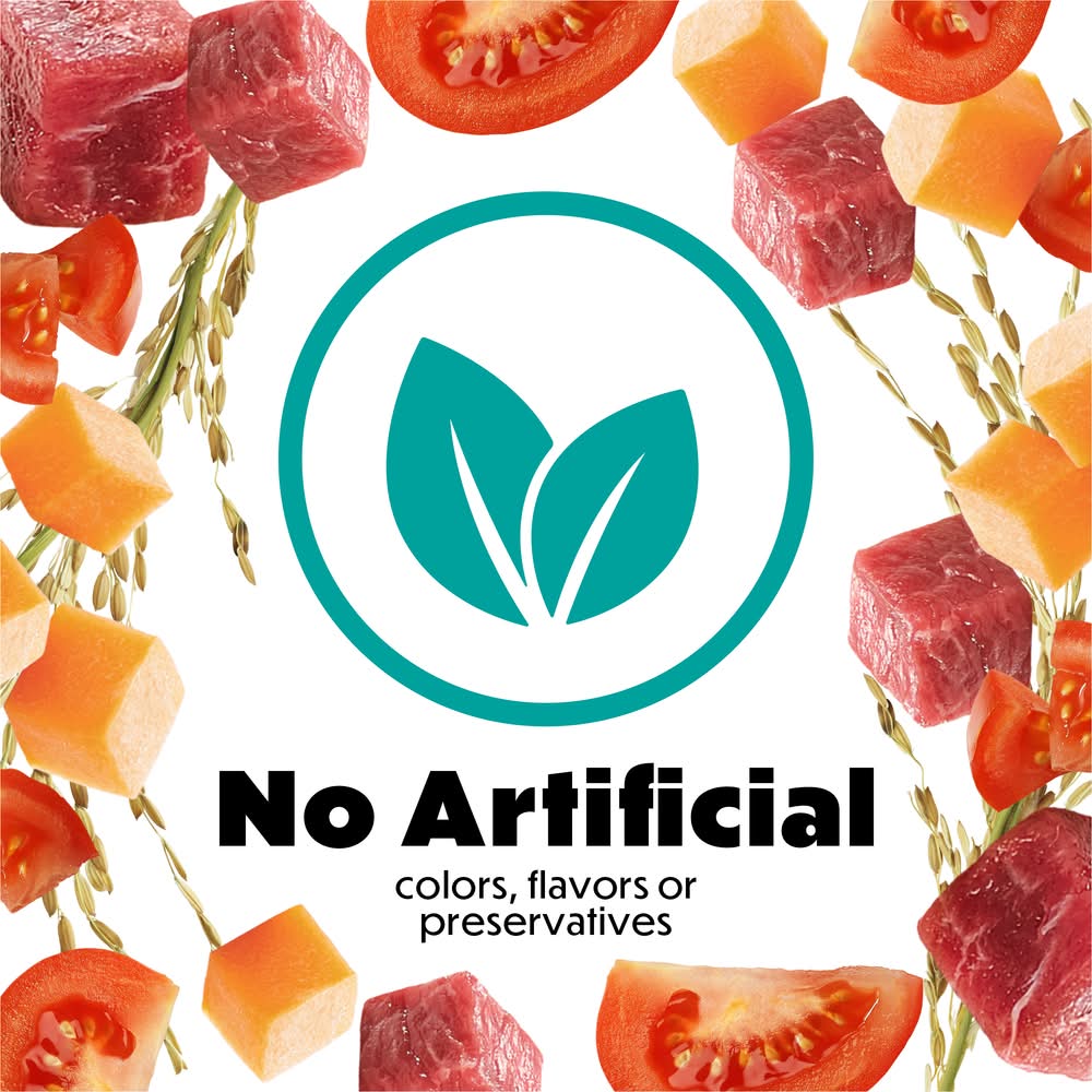 Make your dog's mealtimes as enriching and enticing as your own with Purina Beneful Freshly Prepared Blends With Lamb, Brown Rice, Carrots, and Tomatoes wet dog food. This flavorful meal is steam-cooked and sealed for freshness for a mealtime that’s bursting with fresh flavor. Each resealable container features tender, meaty shreds made with real lamb, real brown rice, carrots, and tomatoes you can see for a satisfying experience with every serving. These ingredients are all accompanied by a savory dog food gravy that inspires him to finish every bite. Crafted without artificial colors, flavors or preservatives, this high-quality protein-rich dog food wet recipe contains 23 essential vitamins and minerals to help support his overall health and strong muscles. Purina Beneful wet dog food provides 100 percent complete and balanced nutrition for your adult dog and makes a delicious standalone meal or can be mixed with your dog’s favorite kibble as tasty wet dog food topper.