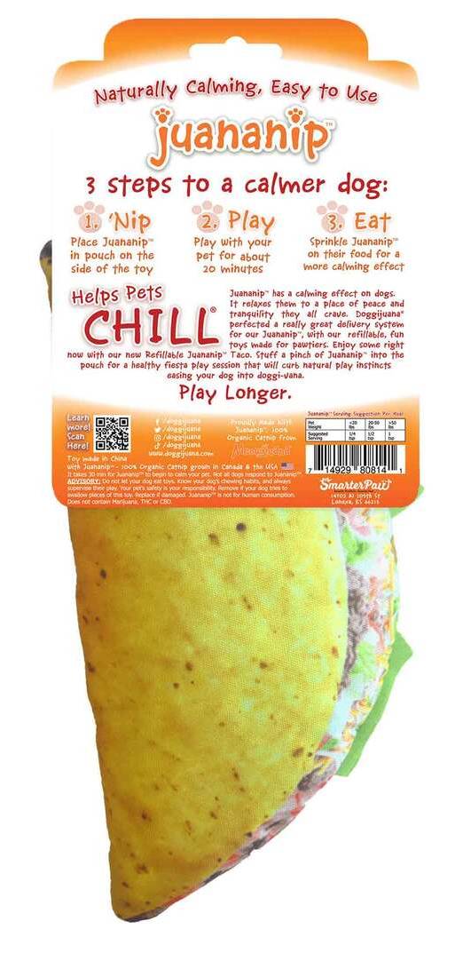 Juananip has a calming effect on dogs. It relaxes them to a place of peace and tranquility they all crave. Doggijuana has perfected a really great delivery system for their Juananip with their refillable, fun toys made for pawtiers. Enjoy some right now with the Refillable Pup Cup Dog Toy. Stuff a pinch into the pouch for a healthy play session that will ease your dog into doggi-vana. Play Longer|Place a pinch of Juananip in the pouch on the side of the toy, play with your pet for about 20 minutes, and then sprinkle some Juananip on their food for a longer lasting calming effect|What is Juananip? It's catnip! Dogs have catnip receptors in their faces and stomachs, similar to cats. Nepetalactone, the essential oil in catnip, binds to the receptors and induces a response that is so relaxing, it’s drool worthy. Dogs don’t get “high” from catnip like cats do. Instead, it is a calming agent when eaten and a great way to encourage your dog to play longer through smell