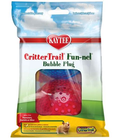 Use Fun-nels Bubble Plugs to expand any CritterTrail habitat or accessory and watch your pet explore|Use a Connector Ring (not included) to snap the Bubble Plug in place|Easy to clean Universally connectable, easily attaches to all CritterTrail, Habitrail and SAM systems Bubble Plug is 175 long|Bubble Plugs are used to seal off any open Fun-nels tubes in your system|It can also be used to plug any unused opening for Fun-nels in any CritterTrail habitat or accessory