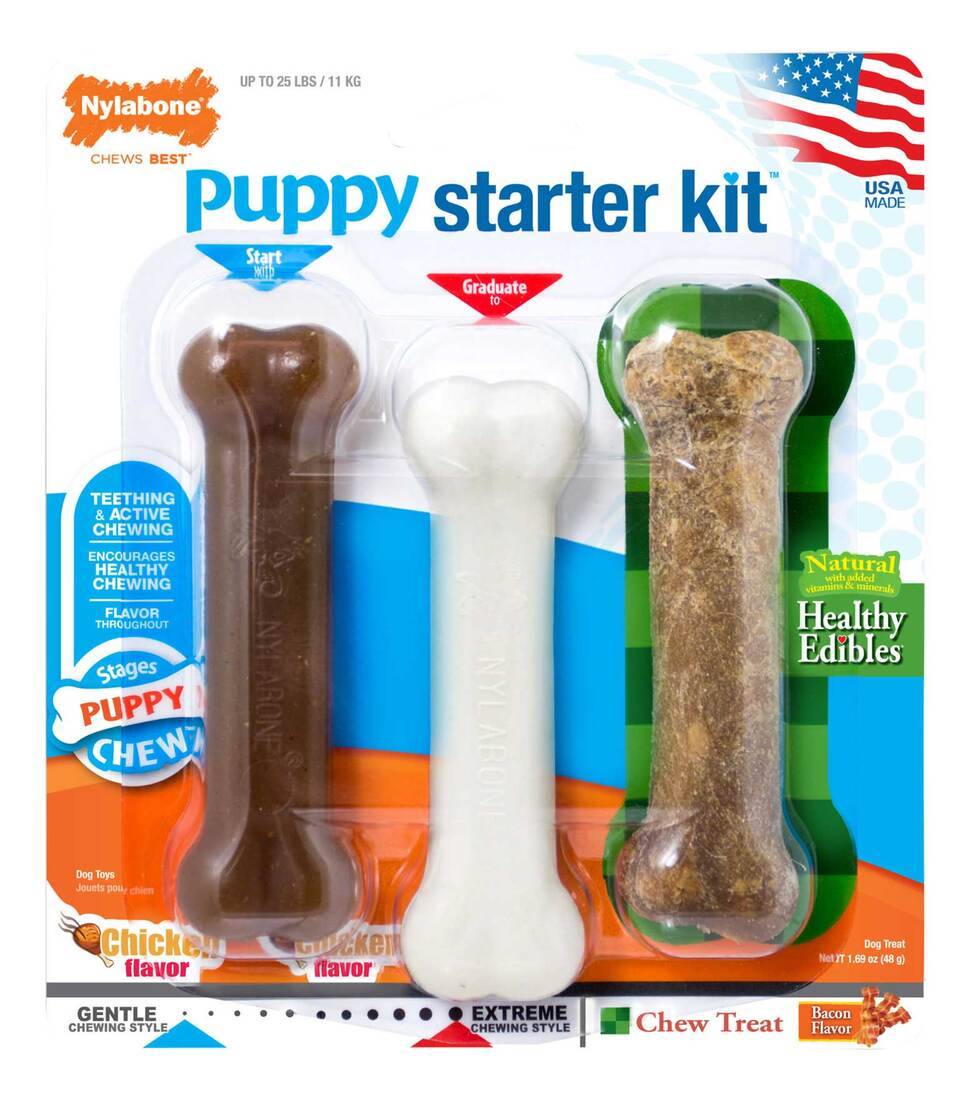 Nylabone Puppy Starter Kit Chew Dog Toys, Chicken-Bacon (1.6 oz, 3 ct)