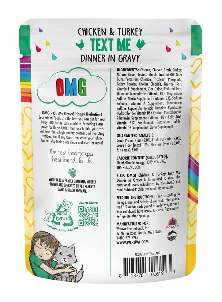 Weruva B.f.f. Omg Text Me Chicken & Turkey Dinner in Gravy Wet Cat Food (2.8 oz)