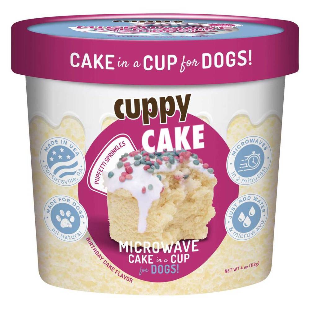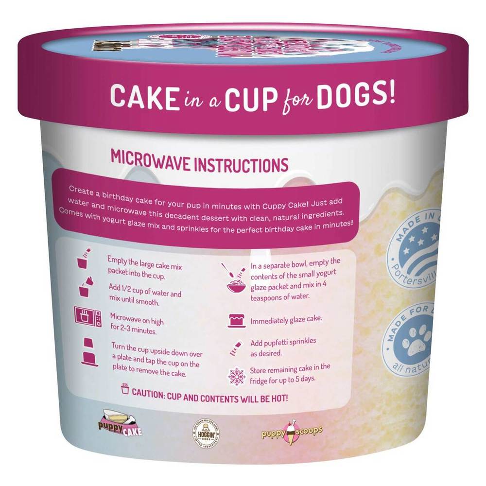 The magic unfolds in just two minutes add water, microwave, and watch as a fluffy, festive cake takes shape before your eyes. Made with natural and safe ingredients for your dog.This perfect microwave cake in a cup, comes with a perfect yogurt glaze and sprinkles. Microwaves in just two minutes, and its made and sourced in the USA. Puppy Cake Llc., Portersville, Pa 16051