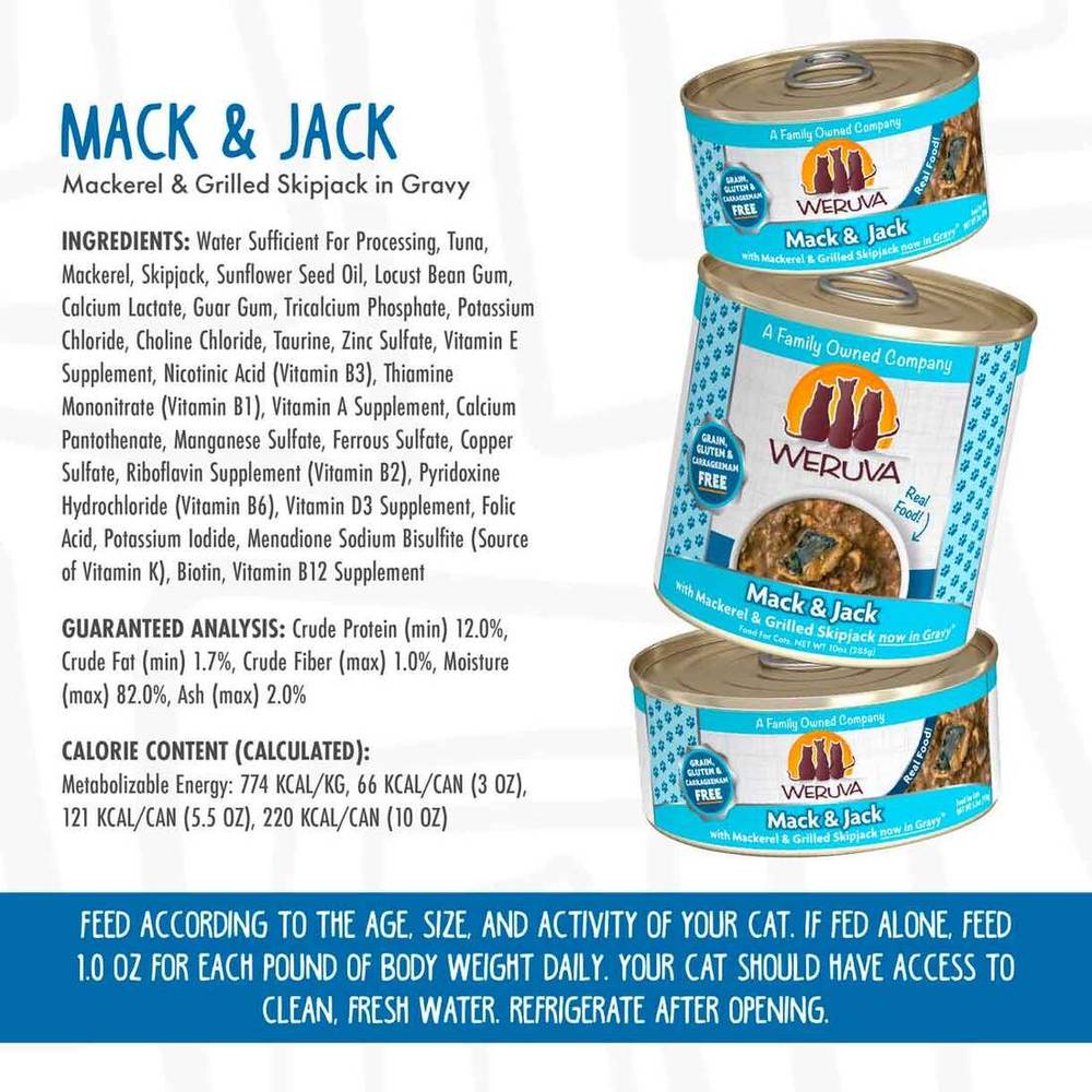 Weruva Classic Natural Wet Cat Food, Mack and Jack with Mackerel and Grilled Skipjack in Gravy, 3 Ounces