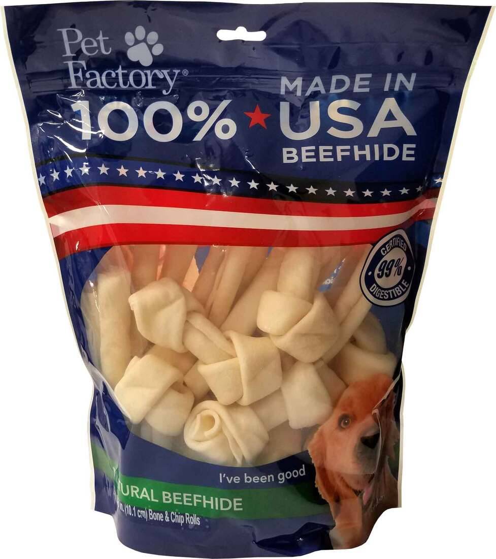 Pet Factory Bones & Chip Rolls Beefhide Dog Chew, 4 in (25 ct)
