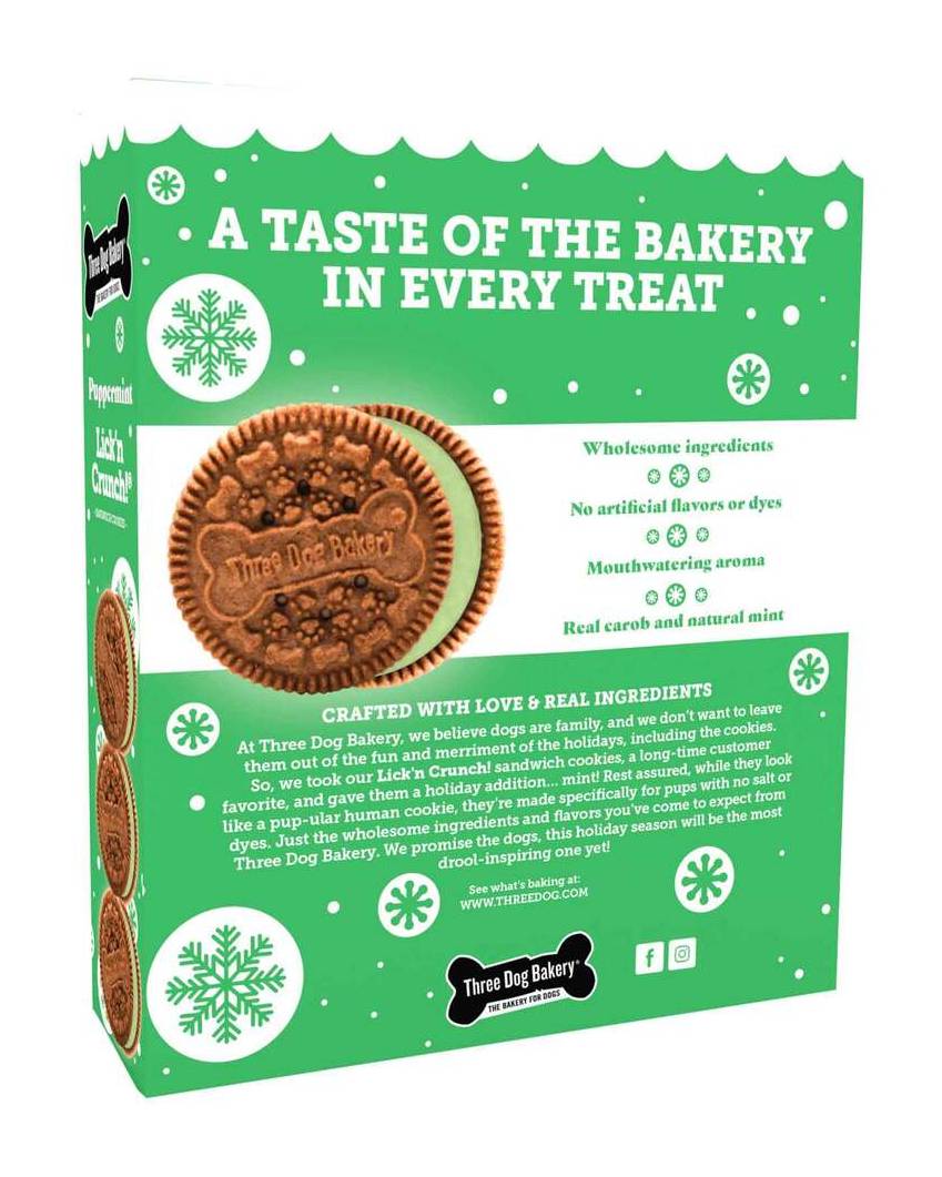 Three Dog Bakery Lickn Crunch Sandwich Cookies Dog Treats, Carob- Peppermint Crème (13 oz)