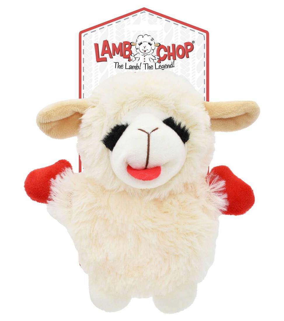 Shari Lewis' classic and beloved lamb is adored by countless customers and their dogs. This mini addition to the Lamb Chop family is no exception! With a flat body filled with crinkle material and a plush head that squeaks, our Lamb Chop Crinkle is perfect for pups who love multi-textured toys and can't get enough of their lamb! Size: XS