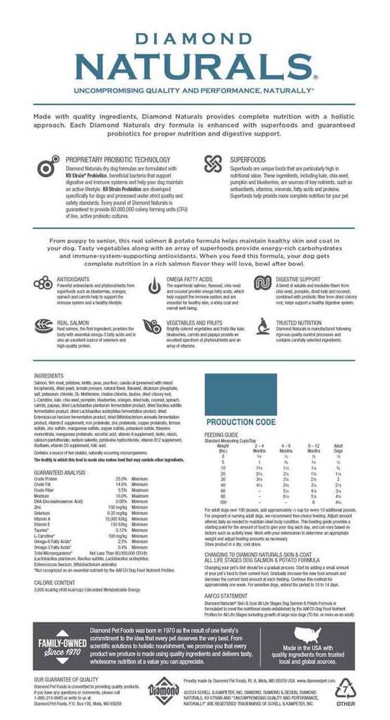Diamond Naturals Skin & Coat Formula Dog Food, Salmon & Potato (30 lbs)
