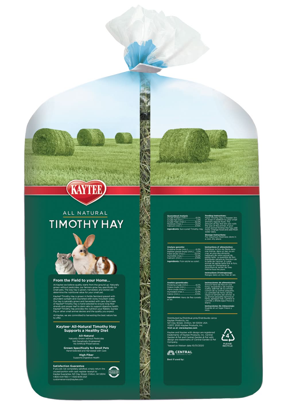 The Way Hay Is Grown, Cut And Stored Can Determine The Nutritional Value For Your Pet. The Experts Who Bring You Kaytee Products Understand How Important Your Pet'S Health Is To You. Kaytee Timothy Hay Provides The Nutrition Your Rabbit, Guinea Pig Or Other Small Animal Desires And The Quality You Expect. Each Bale Of Hay Is Hand Selected To Ensure Long Fiber Strands And Proper Leaf To Stem Ratio To Support Digestive Health. Kaytee Timothy Hay Is Grown In The Ideal Ecological Location For Moisture And Climate Control And Is Then Stored In A Protected Environment To Ensure The Quality And Superior Nutritional Value Are Maintained. Making It Easy To See Why Kaytee Timothy Hay Is Truly A Cut Above The Rest. See The Difference: Scan To Learn More About This Products And Other Kaytee Products! Visit For All Pet Rabbits (4 Weeks & Older) Guinea Pigs, Chinchillas,Hamsters, Gerbils, Rats & Mice. Rabbit, Guinea Pig & Other Small Animals.