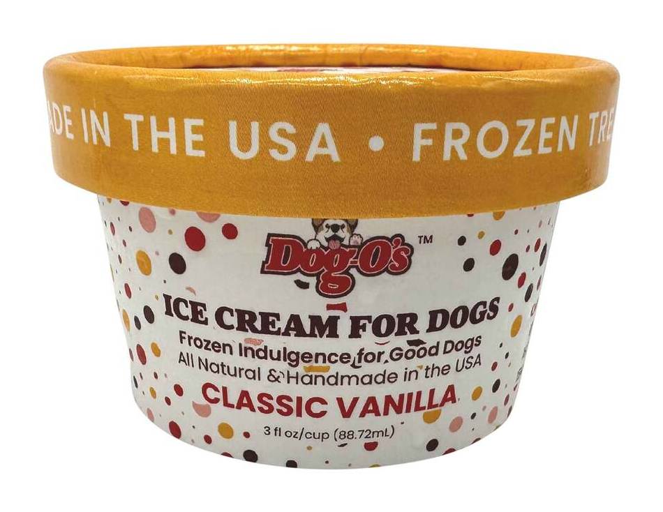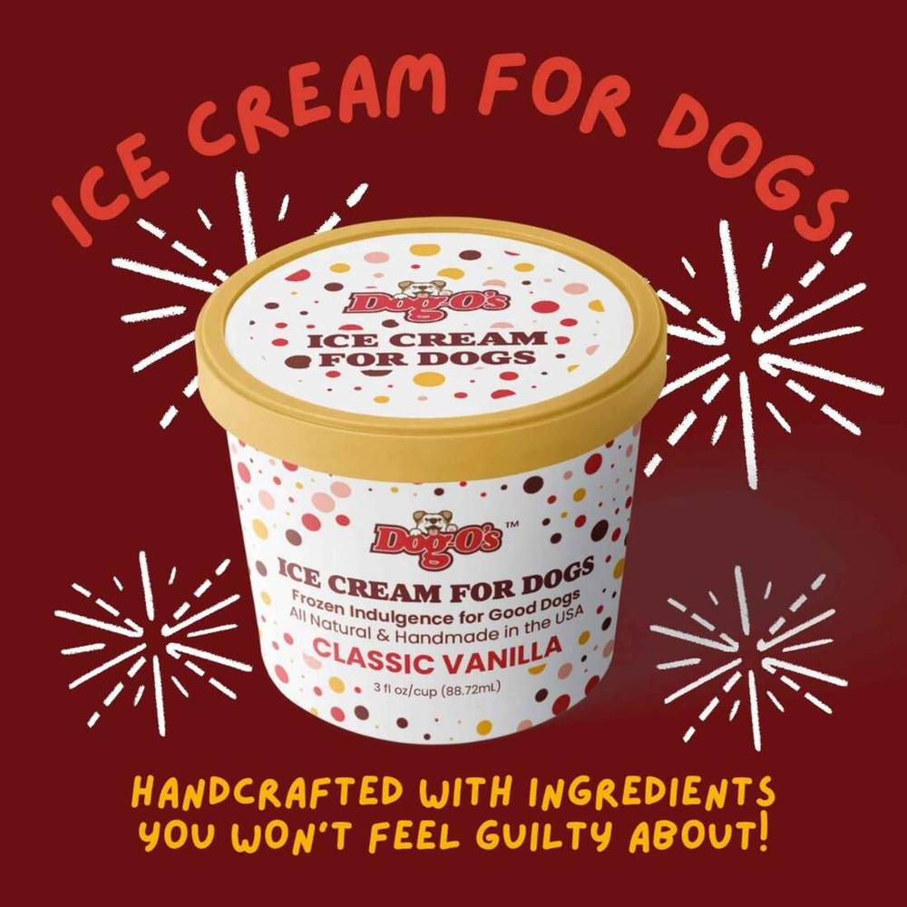 Fun & Refreshing: Beat the heat and keep your dog cool with our refreshing ice cream treat designed specifically for dogs|Tail-Waggingly Delicious: Treat your furry friend to Dog-O's Ice Cream for Dogs, a frozen snack that will have them begging for more|All-Natural Goodness: Made with wholesome ingredients, our ice cream is free from artificial colors, flavors and preservatives, ensuring a healthier treat for your beloved pup. Dog-O's ice cream for dogs is a guilt-free indulgence for your best friend. Happy & Healthy Pups: Dog-O's Ice Cream for Dogs not only satisfies your dog's sweet tooth but also promotes their overall well-being, thanks to our carefully selected natural ingredients|Made in the USA: This ice cream is proudly made right here in the United States, guaranteeing the highest quality and safety standards for your furry companion Crude Protein 3% min crude Fat 13% min crude fiber 6% max Moisture 57%