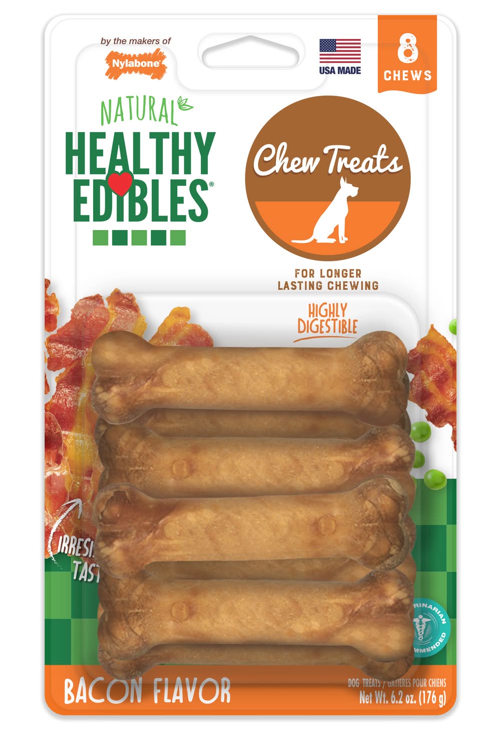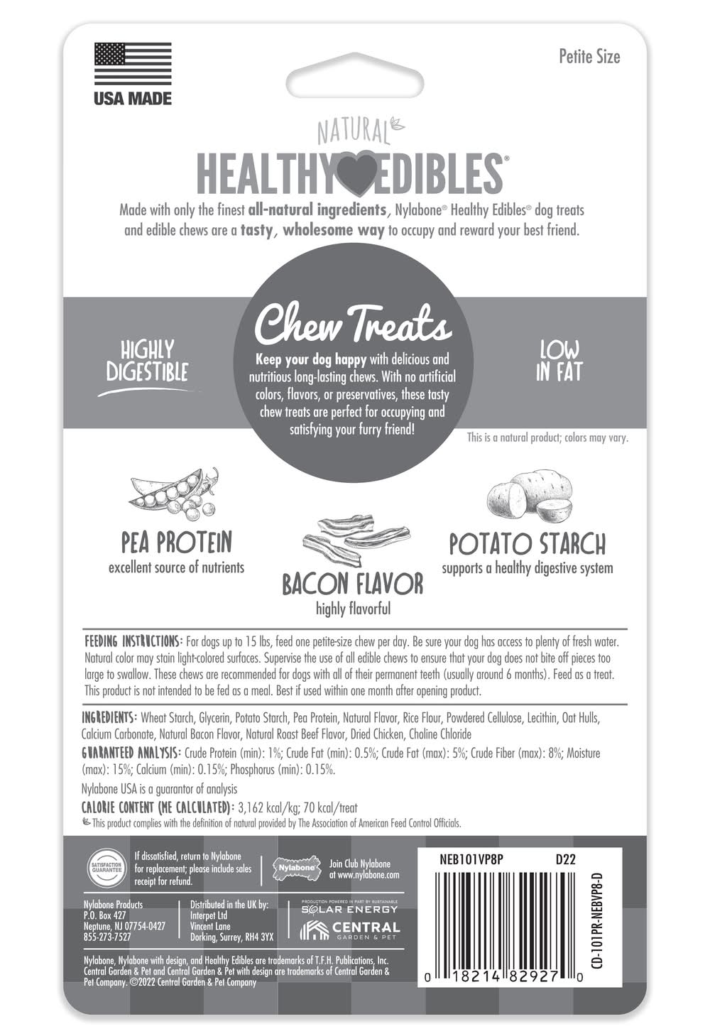 Nylabone Natural Healthy Edibles Petite Dog Bone Chews, Bacon (6.2 oz, 8 ct)