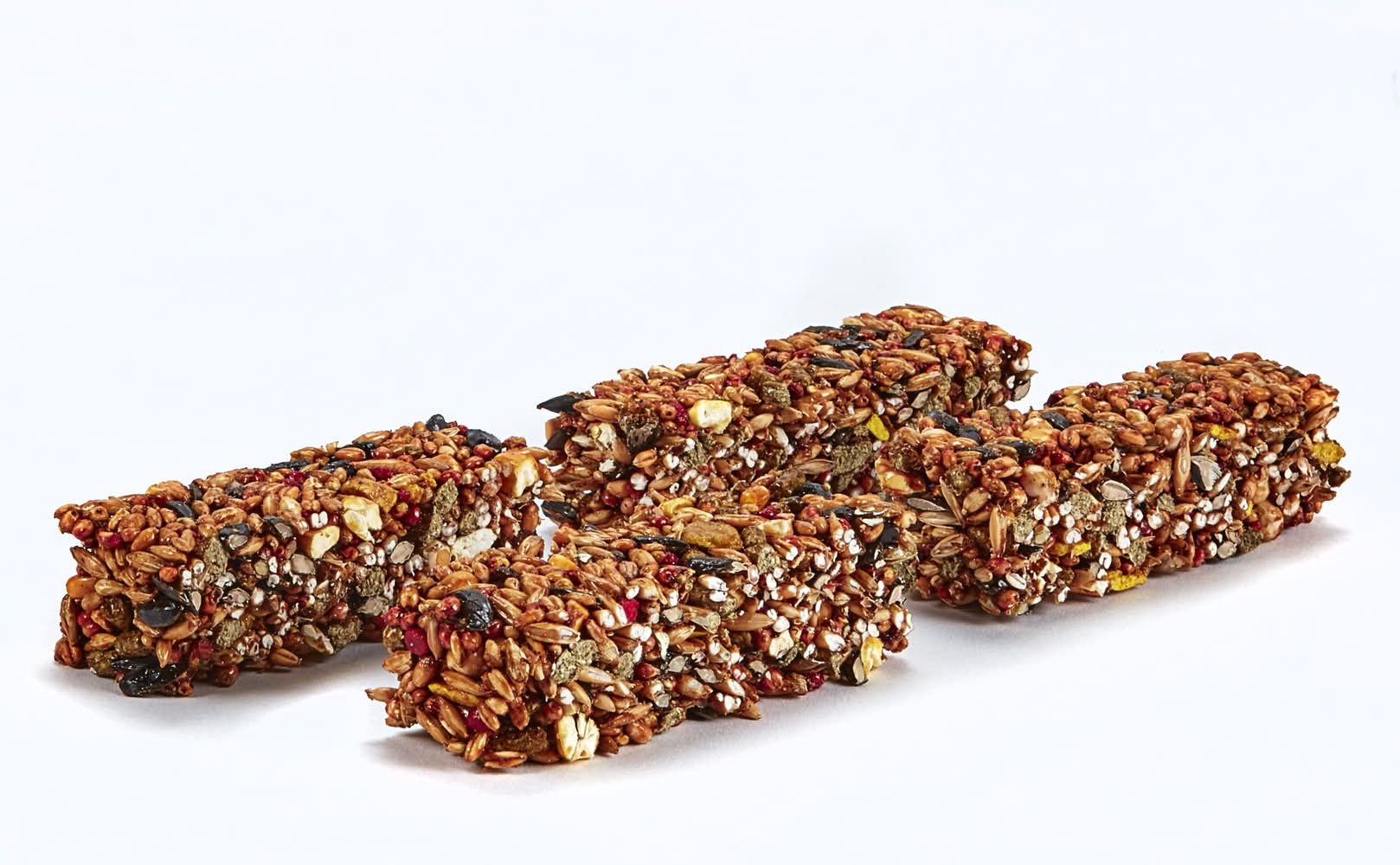 Ingredients: Oats, Wheat, Milo, Small Yellow Corn, Peas, Sunflower Seed, Barley, Oat Groats, Toasted Corn Flakes, Safflower Seed, Gelatin, Sun-cured Alfalfa Meal, Dehulled Soybean Meal, Ground Corn, Honey, Dextrose, Ground Oats, Ground Rice, Wheat Middlings, Calcium Carbonate, Dicalcium Phosphate, Salt, Cane Molasses, Vitamin A Supplement, Choline Chloride, Soybean Oil, Ground Flax Seed, Corn Gluten Meal, Fructooligosaccharide, DL-Methionine, L-Lysine, Yeast Extract, Mixed Tocopherols (a preservative), Yucca Schidigera Extract, Propionic Acid (a preservative), Vitamin E Supplement, Vitamin B12 Supplement, Riboflavin Supplement, Ferrous Sulfate, Zinc Oxide, Manganous Oxide, Menadione Sodium Bisulfite Complex (source of vitamin K activity), Niacin, Copper Sulfate, Rosemary Extract, Citric Acid, Cholecalciferol (source of vitamin D3), Calcium Pantothenate, Pyridoxine Hydrochloride, Thiamine Mononitrate, Folic Acid, Calcium Iodate, Biotin, Cobalt Carbonate, Sodium Selenite, Dried Bacillus licheniformis Fermentation Product, Dried Bacillus subtilis Fermentation Product, FDC Yellow #5, FDC Red #40 Contains: Manufactured in a facility that processes peanuts and tree nuts
