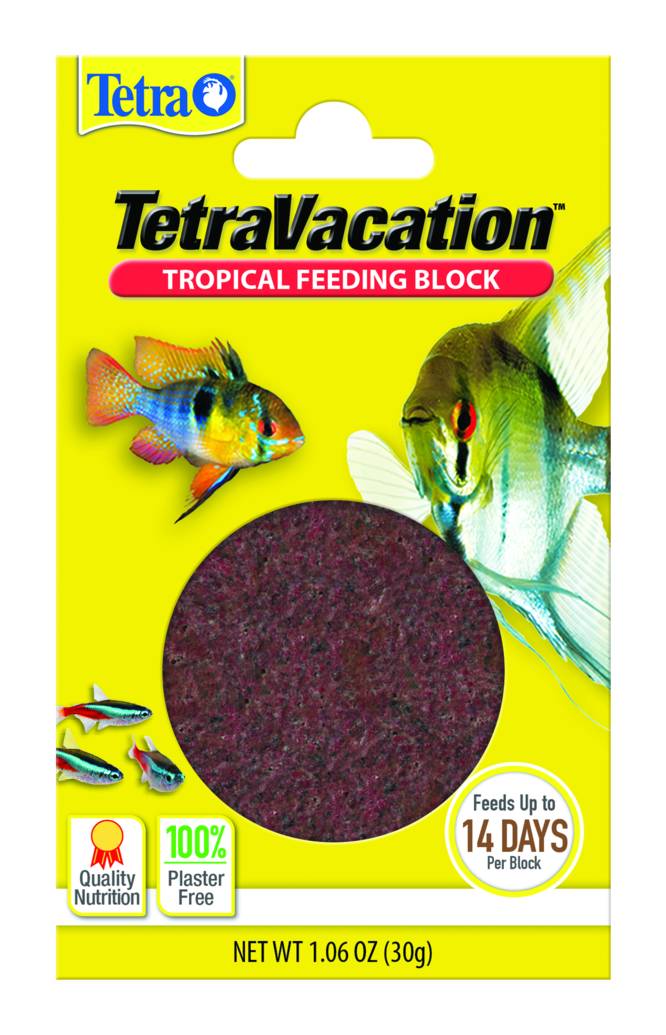 Remove foil seal, and tray, drop feeding block(s) into the aquarium. see chart below for number of blocks recommended. gallons (10-19), vacation length (up to 7 days) 1/2-1 feeding block, (up to 14 days) 1 feeding block. gallons (20-28), vacation length (up to 7 days) 1 feeding block, (up to 14 days) 2 feeding blocks. gallons (29+), vacation length (up to 7 days) 1-2 feeding blocks, (up to 14 days) 3 feeding blocks.
