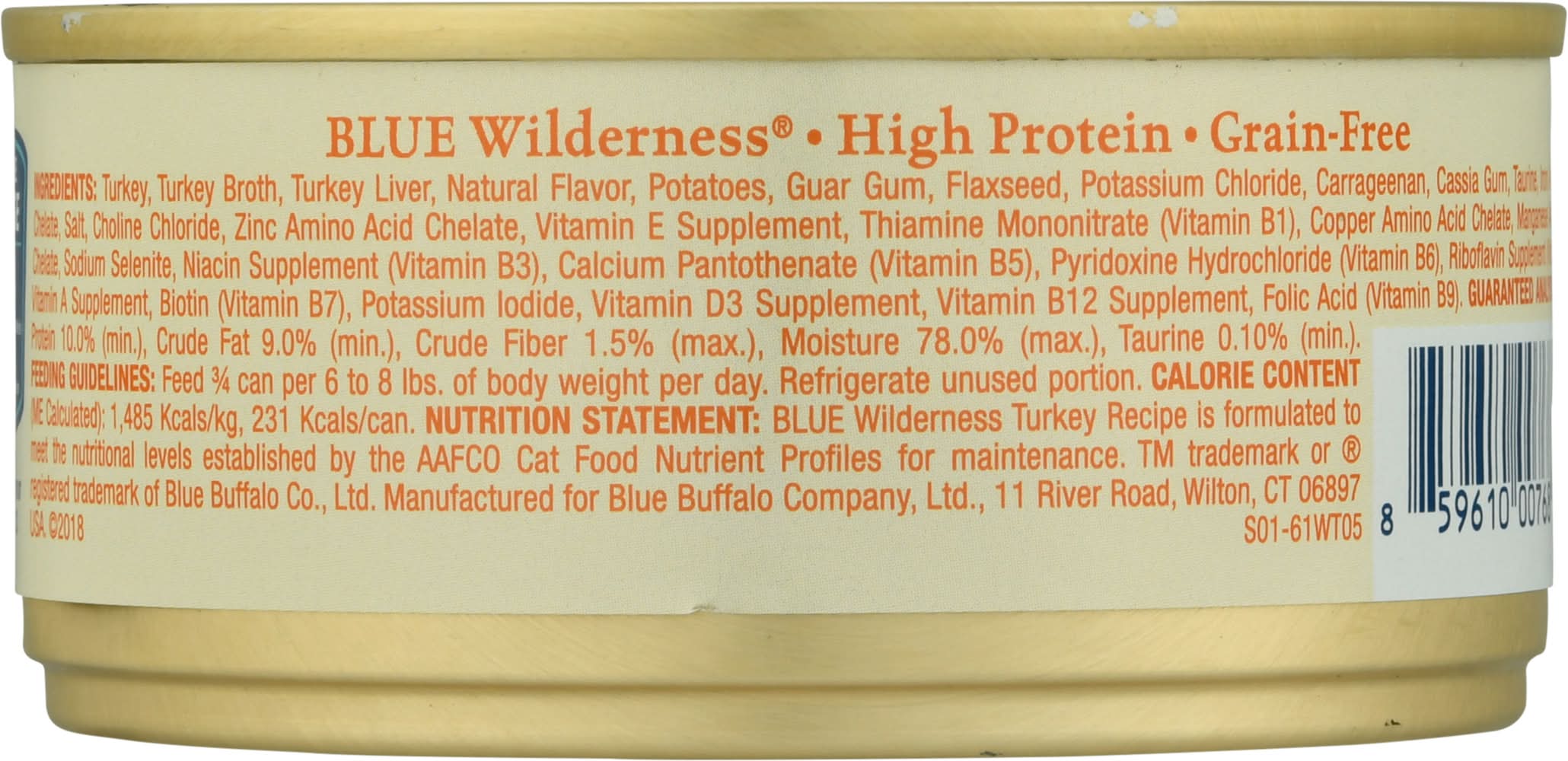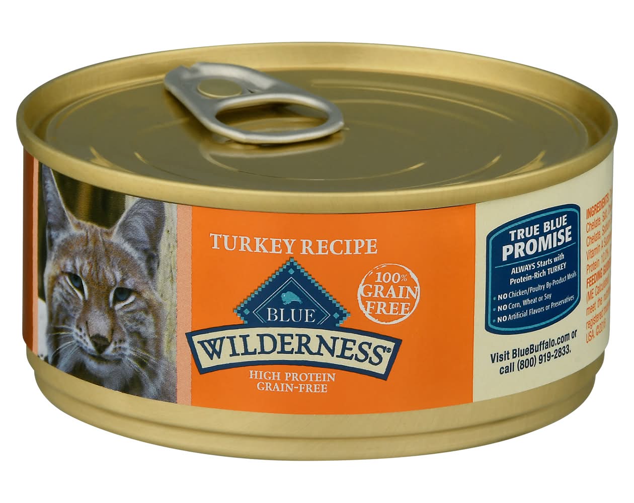 Natural food for cats with added vitamins & minerals. No artificial flavors or preservatives. 100% grain-free. High protein. No chicken/poultry by-product meals. No corn, wheat or soy. True Blue Promise: Always start with protein-rich turkey. Blue Buffalo Company, Ltd., 11 River Road,Wilton,CT,06897