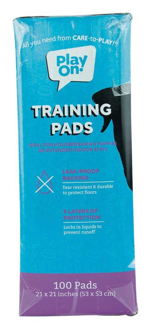 Play On makes it easier for pets to get their fetch on, catch on, wag and wiggle on, by removing the guess work out of finding the best for pets and with the Play On line of training pads your sure to save your precious surfaces from getting messed on!|The quilted anti-tracking top layer soaks in wetness and ensures your pets mess doesn't go with them|Equipped with five layers of leak proof protection, Play On training pads are good for more than just number one and number two|Protects surfaces with leak-proof and tear-resistant backing|Great for more than just potty training Great to use for things like crate and cage lining, under cat litter boxes, roof leaks or even oil changes to prevent spills