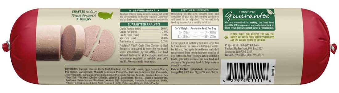 Freshpet Vital Grain Free Fresh Wet Cat Food, Chicken and Beef (16 oz)