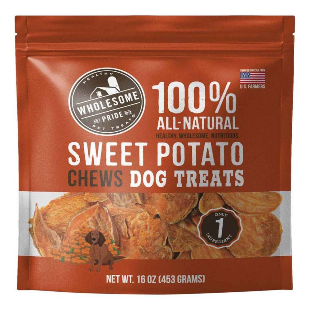 |MADE IN THE USA: Grown on family farms in North Carolina, these tasty treats are part of a sustainability initiative to source & make treats out of aesthetically imperfect sweet potatoes in the USA.|ALL NATURAL & GRAIN-Free: These 100% natural, vegan, gluten-free, and grain-free treats have no artificial ingredients, fillers, or artificial preservatives, making them a great choice for pups with food allergies or sensitive bellies.|DELICIOUS & NUTRITIOUS: Sweet potatoes with skins are a natural source of fiber and vegetable based nutrients, making these natural dog treats as healthy as they are tasty.|MULTIPLE TASTY TREAT FLAVORS: Wholesome Pride dog treats come in a variety of nutritious options to support your dog's health and wellbeing. Choose from one or more of these limited ingredient treats as a gift that's sure to please!