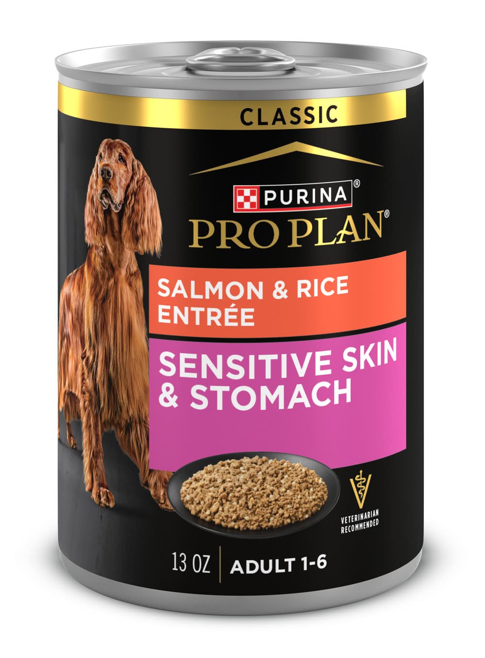 Purina Pro Plan Sensitive Skin & Stomach Wet Dog Food, Salmon & Rice Entrée, Adult 1-6 (13 oz)