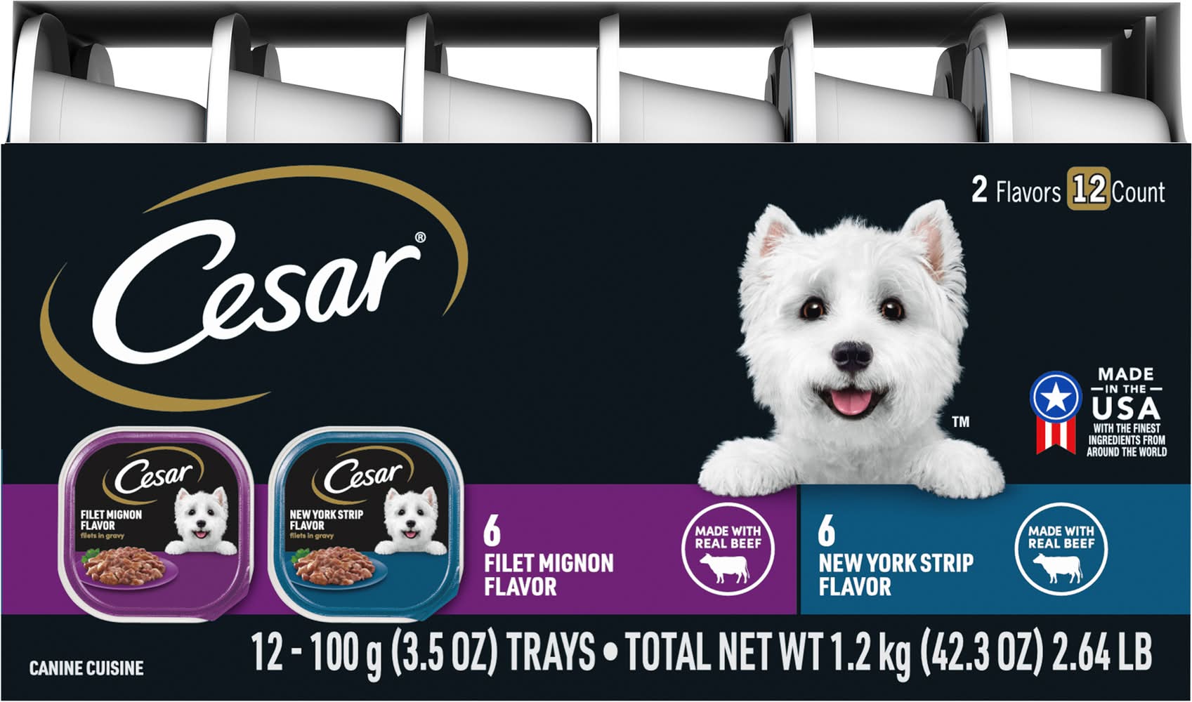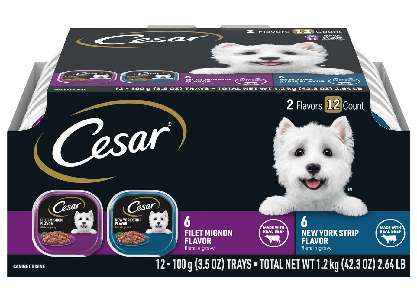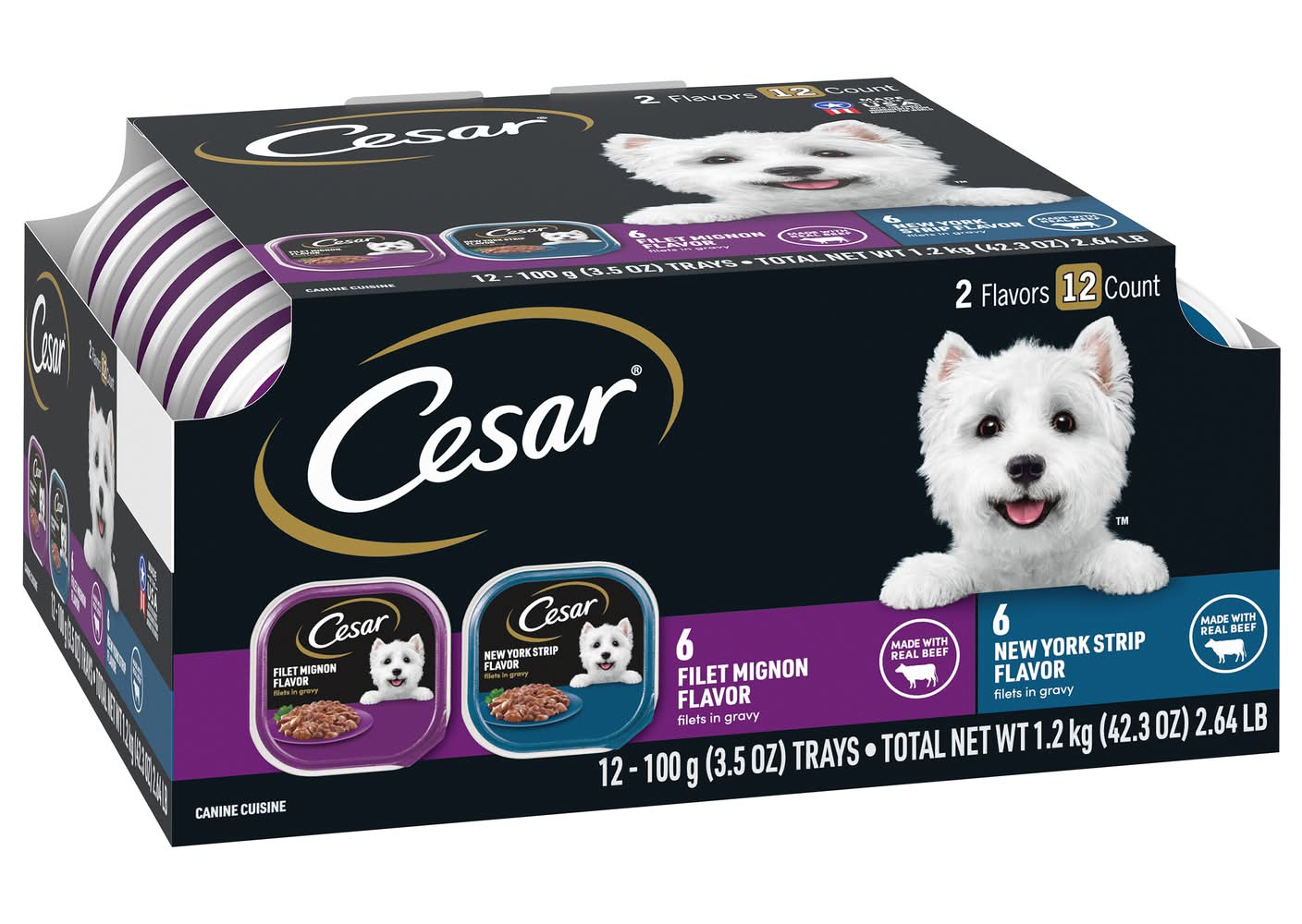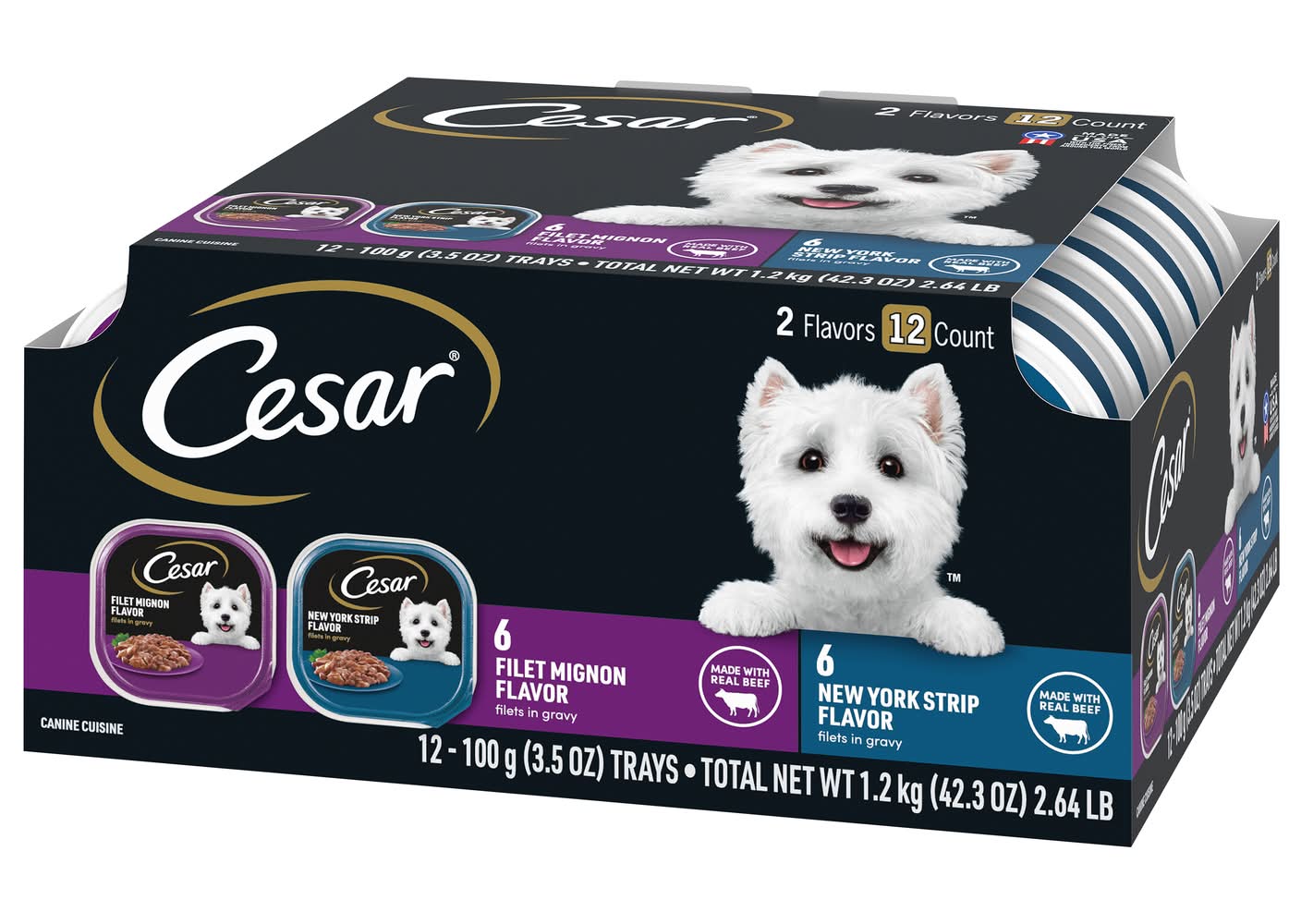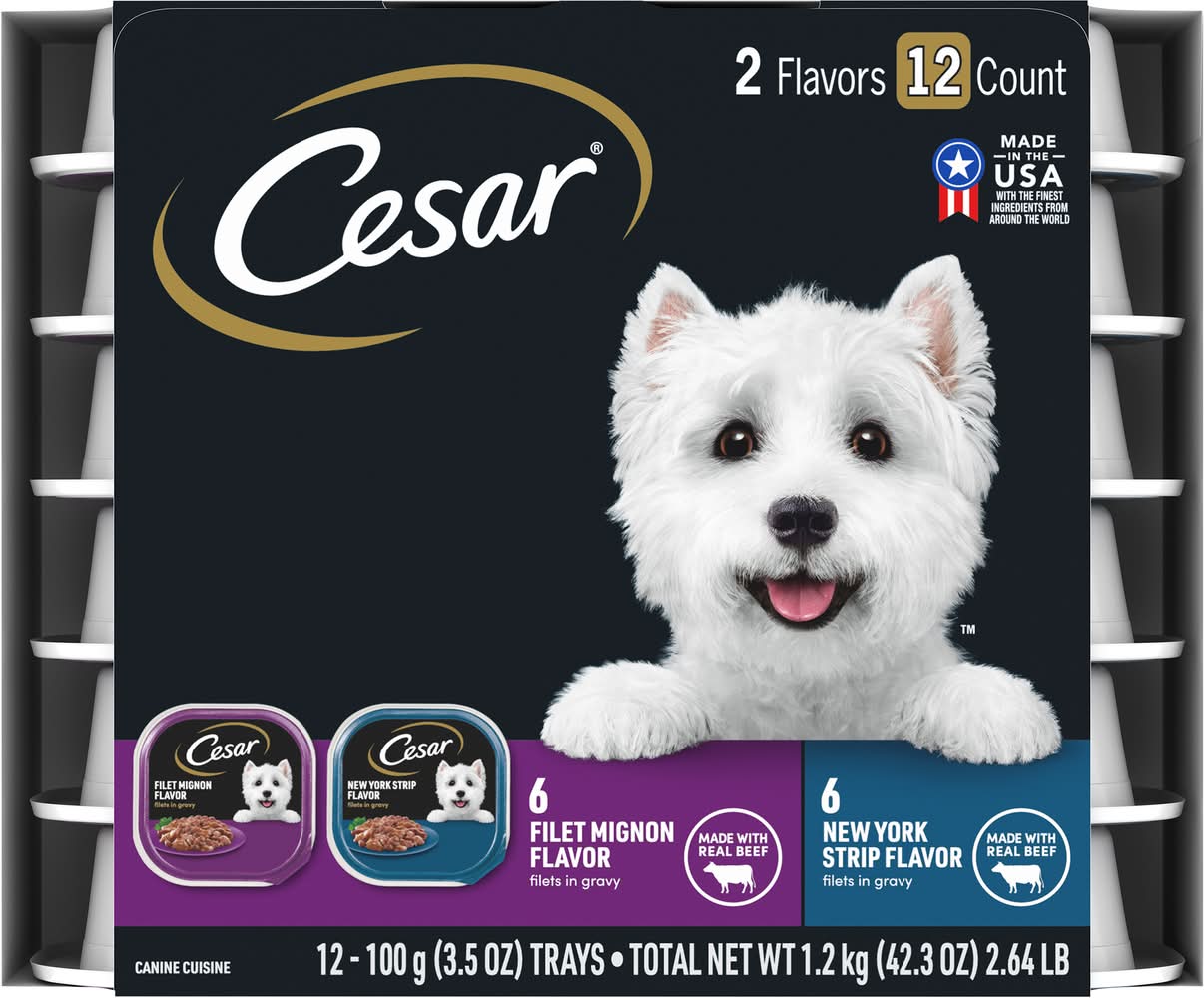 Cesar Filet Mignon & New York Strip Wet Dog Food, Filet Mignon-New York Strip (12 x 3.53 oz)