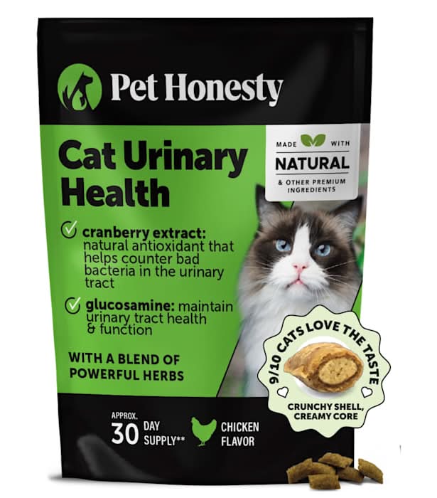 Pet Honesty's Urinary Tract Health for cats your little one will be good to go. Powerful wholesome ingredients including antioxidants, probiotics, and fiber, are packed inside a unique and award-winning texture format: it's crunchy on the outside and creamy on the inside, offering a taste and texture combination that cats love. Size: 0.25 lb