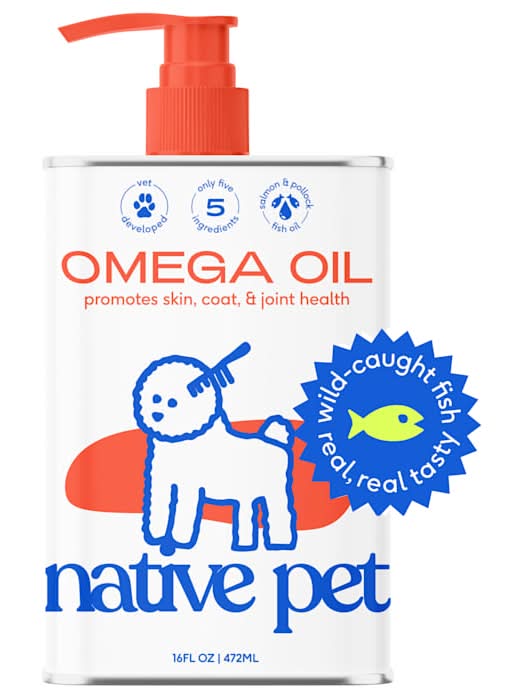 To Support Skin & Coat Health Supplement For that healthy shine, allll the time. Our Omega Oil is a vet-formulated, targeted topper packed with Omega-3 fatty acids that promote a healthy skin and coat, joint health, and mobility. Crafted with Alaskan wild-caught salmon and pollock, one pump of this delicious dinner time addition can make even the pickiest of pups gobble up their food. Size: 1.23 lb