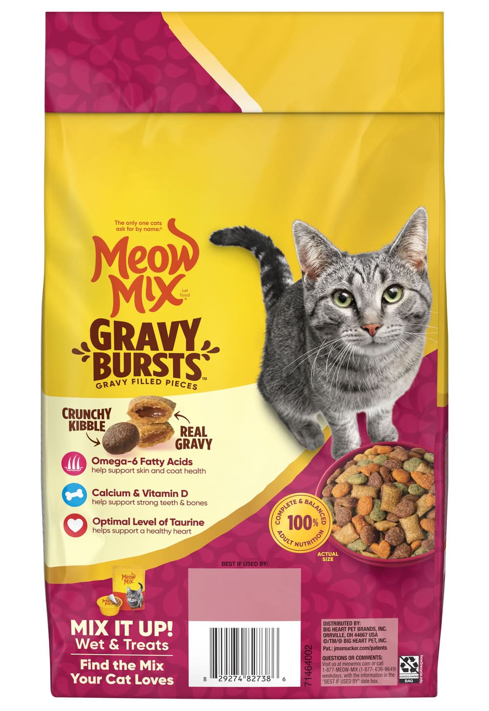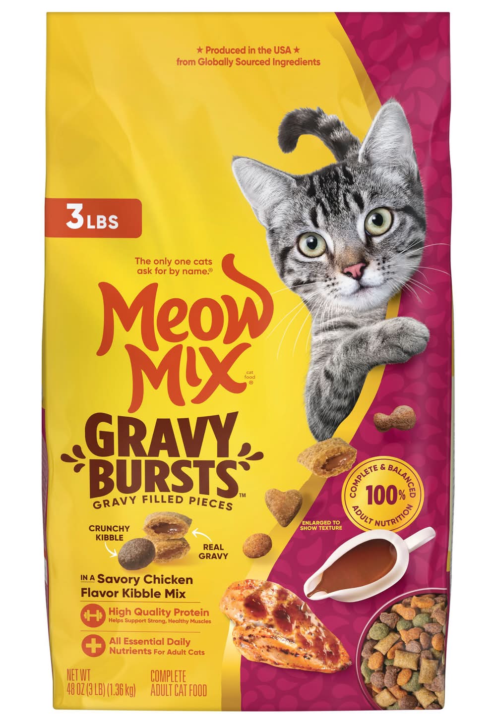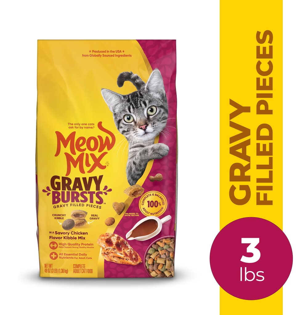 Meow Mix Gravy Bursts Dry Cat Food, Savory Chicken, Adult (3 lbs)