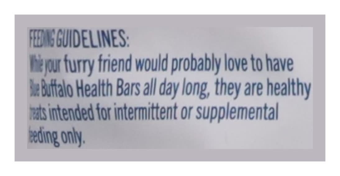 Feeding guidelines: while your furry friend would probably love to have blue health bars all day long, they are healthy treats intended for intermittent or supplemental feeding only.