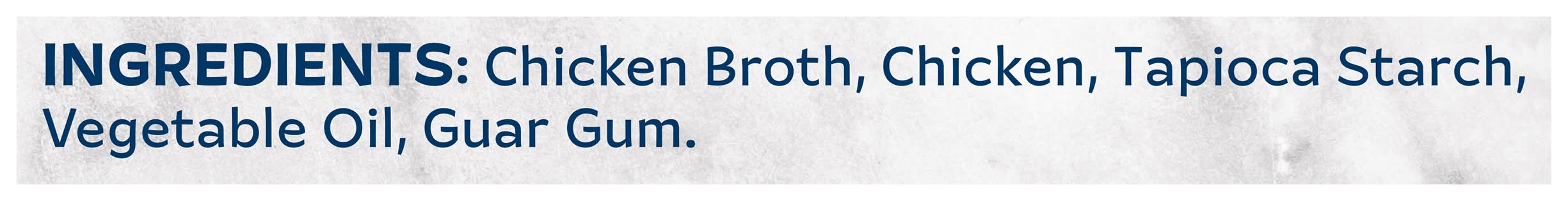 Ingredients: Chicken Broth, Chicken, Tapioca Starch, Vegetable Oil, Guar Gum