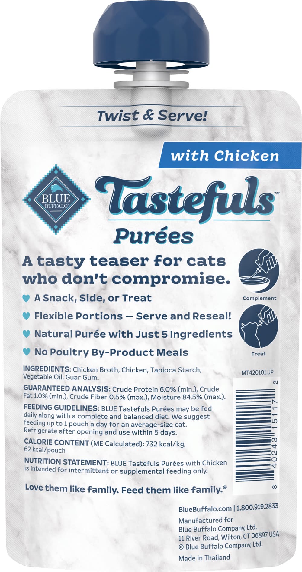 Blue Buffalo Tastefuls Adult Cat Natural Purées, Chicken (3 oz)